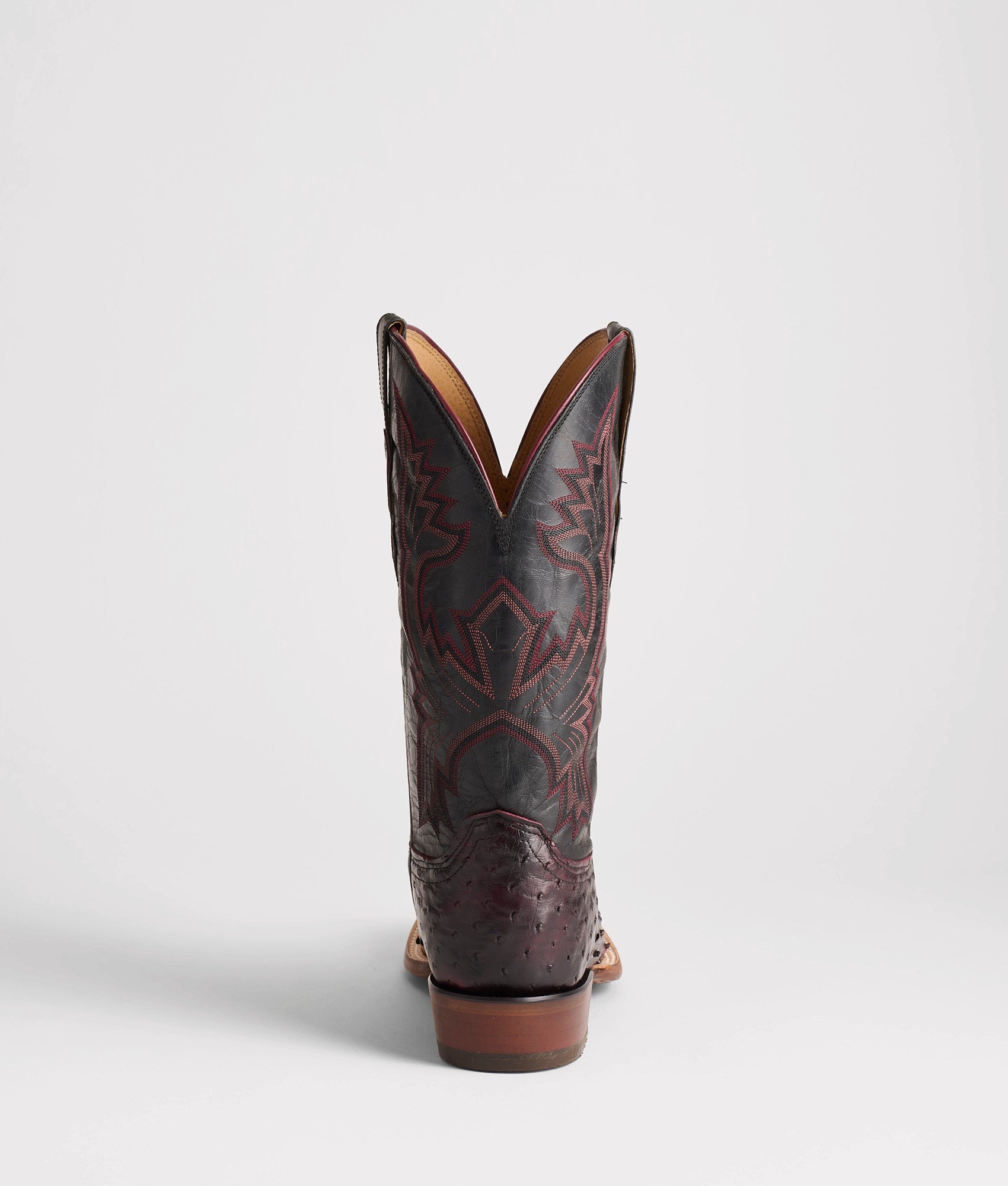The Cliff is an all day every day horseman in jaw-dropping tones of Full Quill ostrich and Mad Dog goat leather. A tonal 10-row stitch pattern and a hand stained finish call for a toast and celebration to decades of a perfected craft. Handmade in Texas.