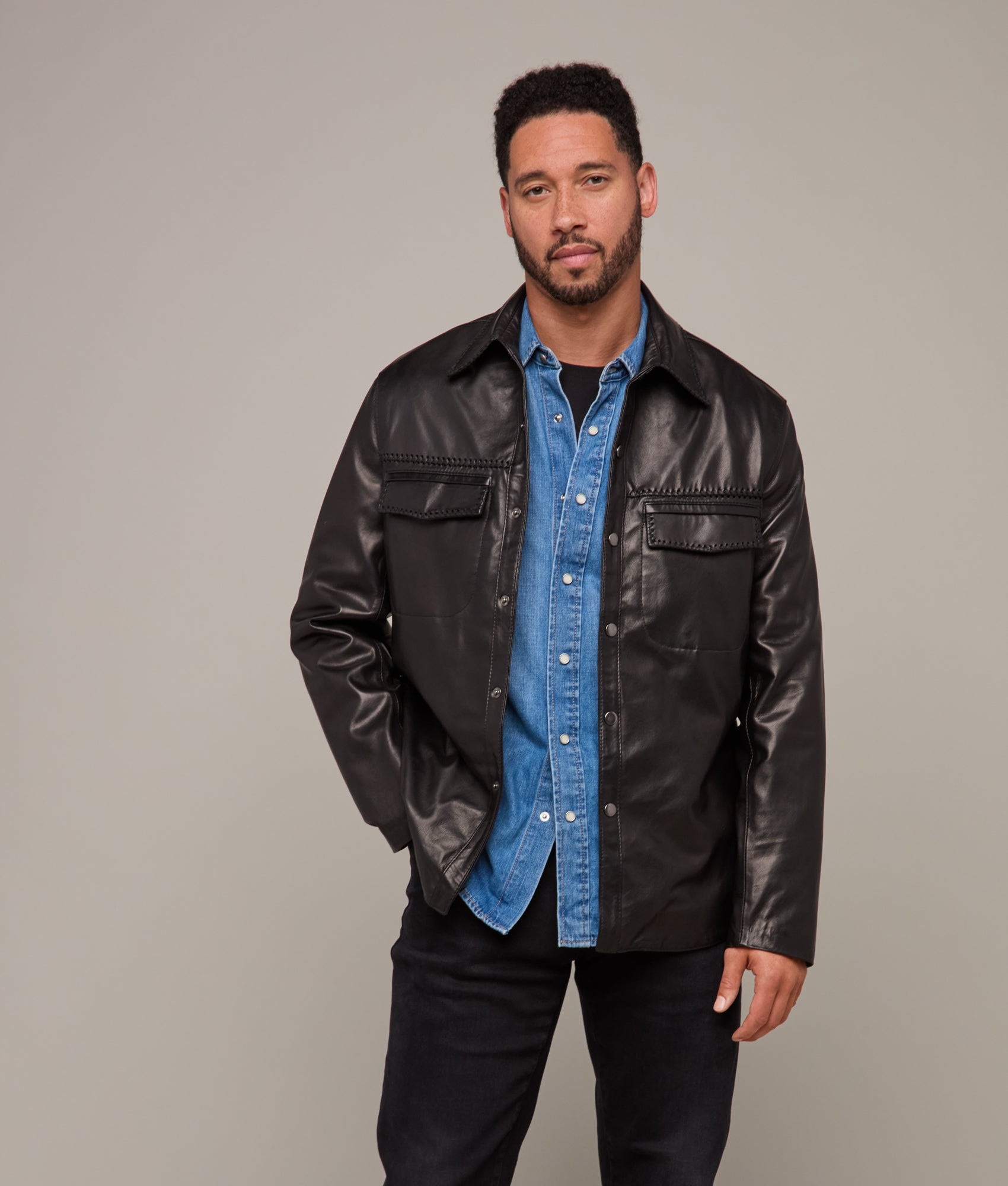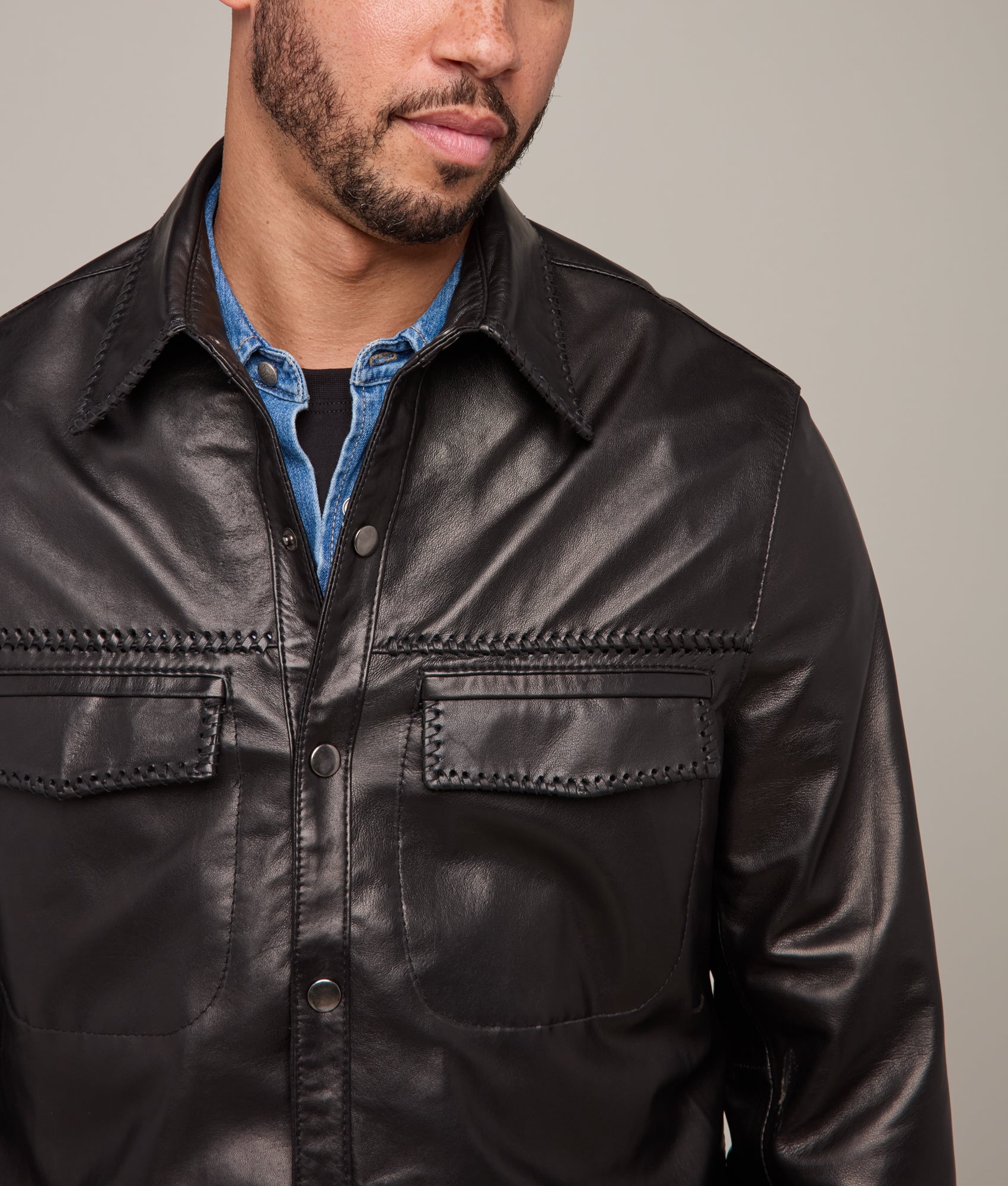 Clint Leather Shacket :: Black