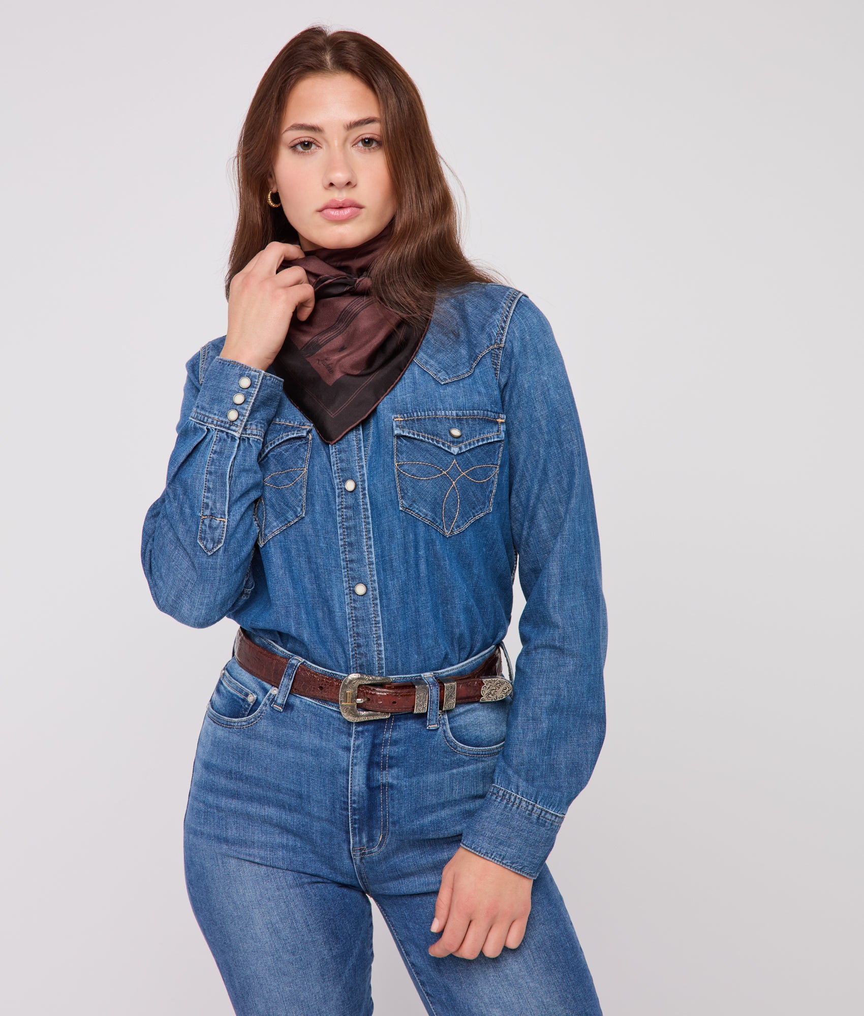 Cowboy Sketch Silk Scarf :: Grey/Brown