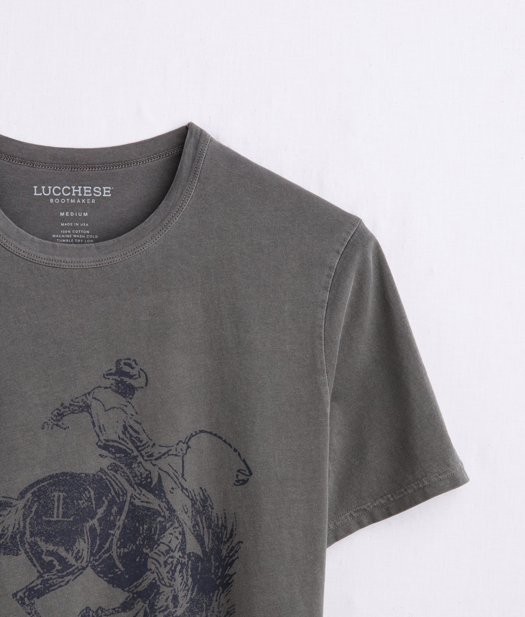 The cowboy sports a classic jersey emblazoned with the number 83. capturing the dichotomy of athlete and animal. Made from soft. breathable Supima Cotton. this tee has a feel of vintage charm with everyday comfort.