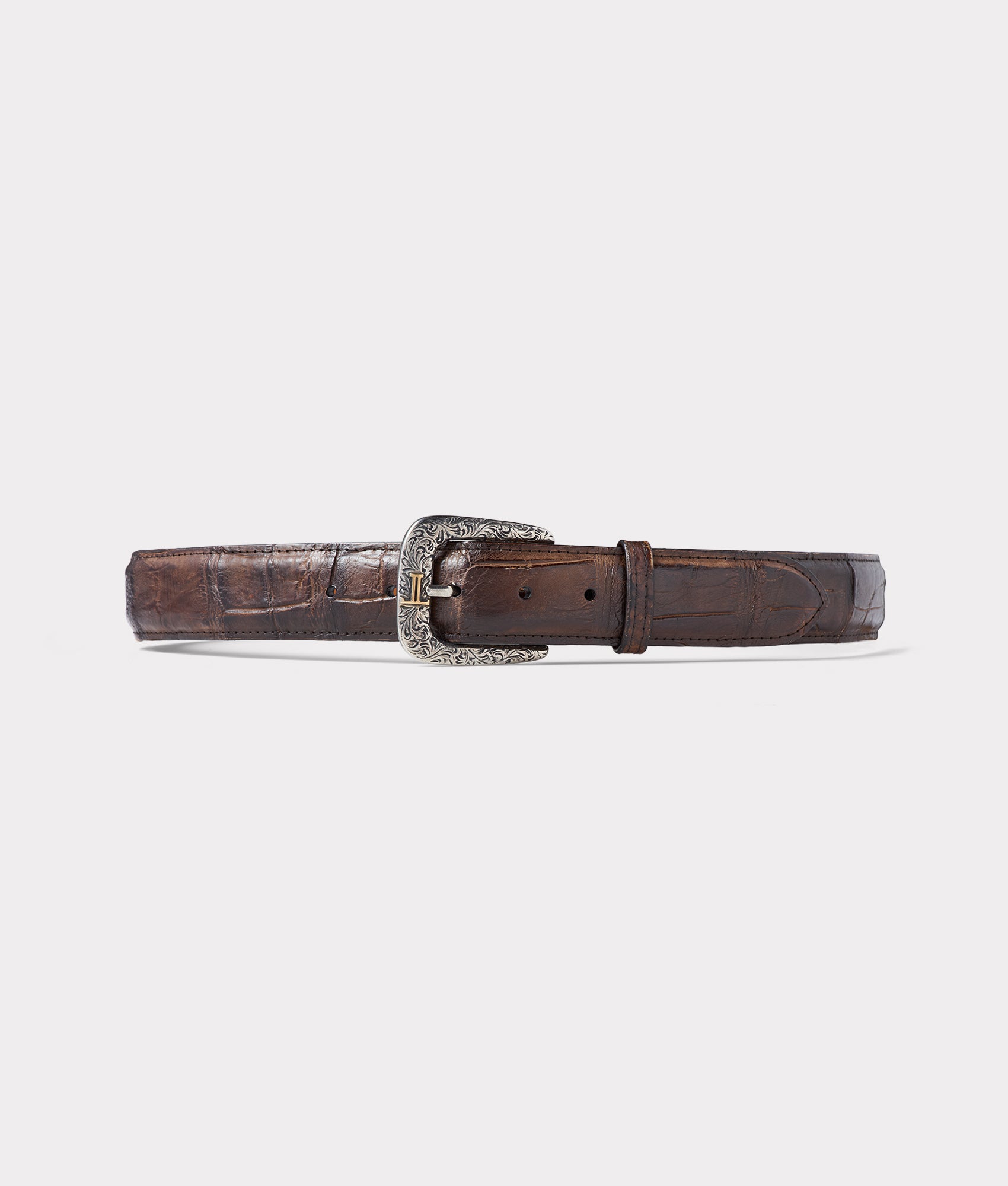 Step into a world where raw power meets refined artistry with the fusion of wild beauty and intricate craftsmanship. The Estoque Belt features the hide of a wild-caught giant alligator. meticulously preserved and expertly transformed into a statement piece of luxury. Handmade in Texas.