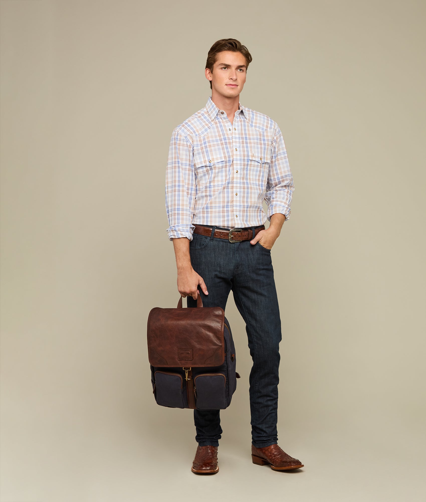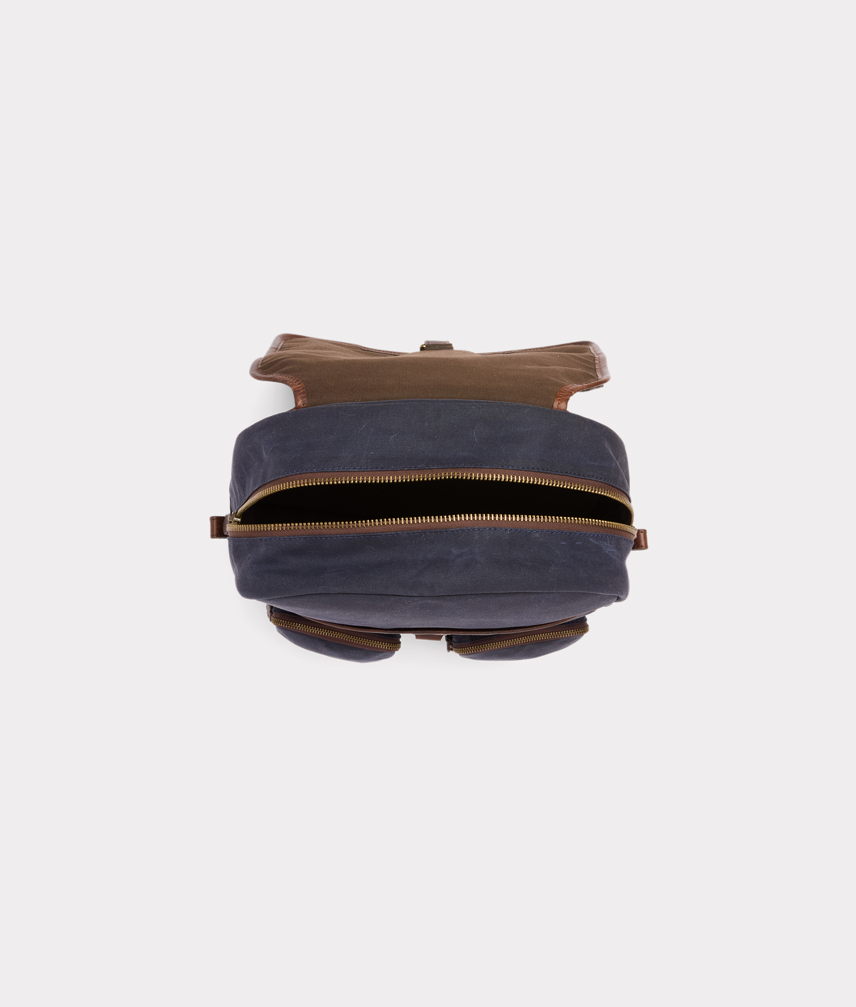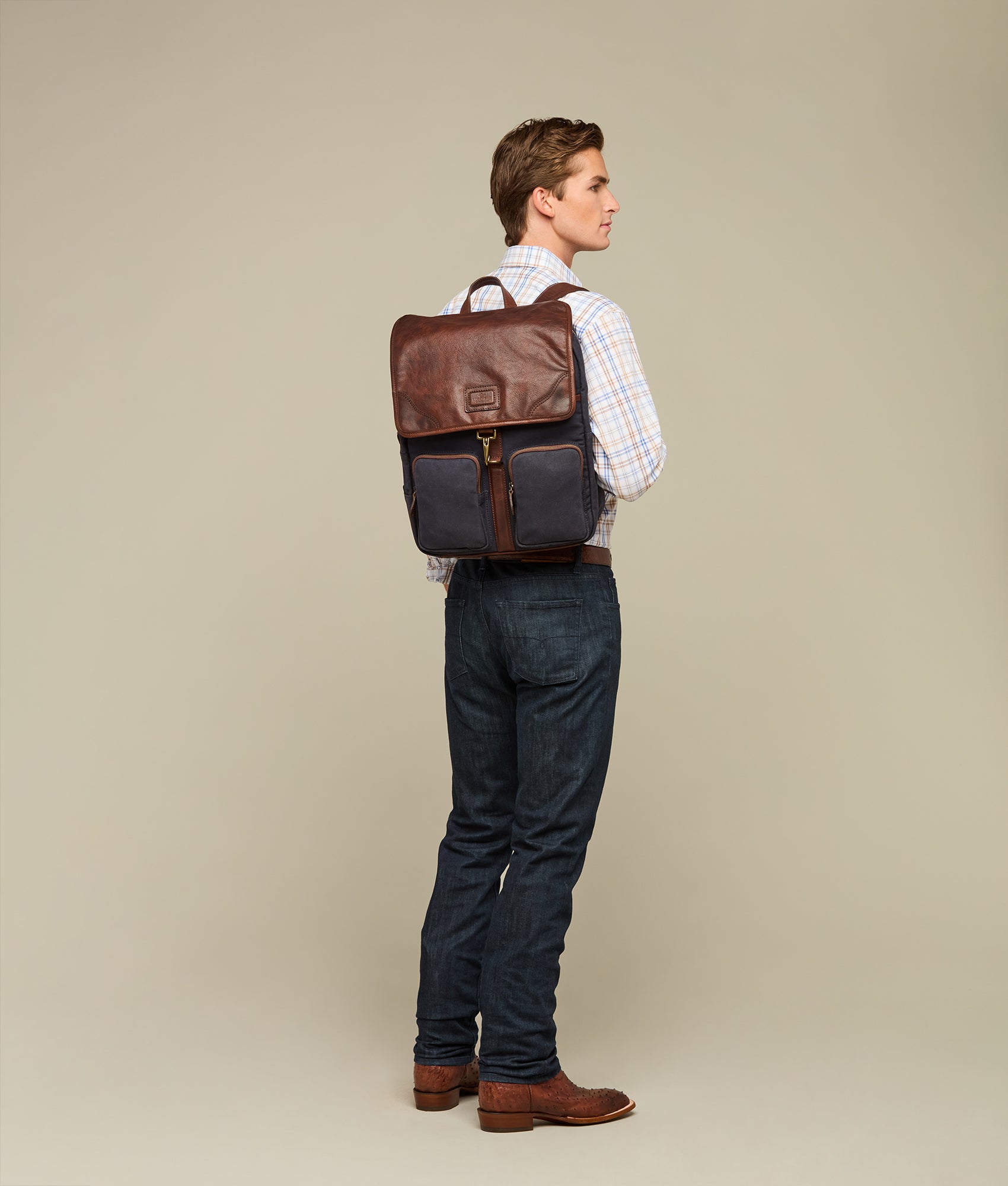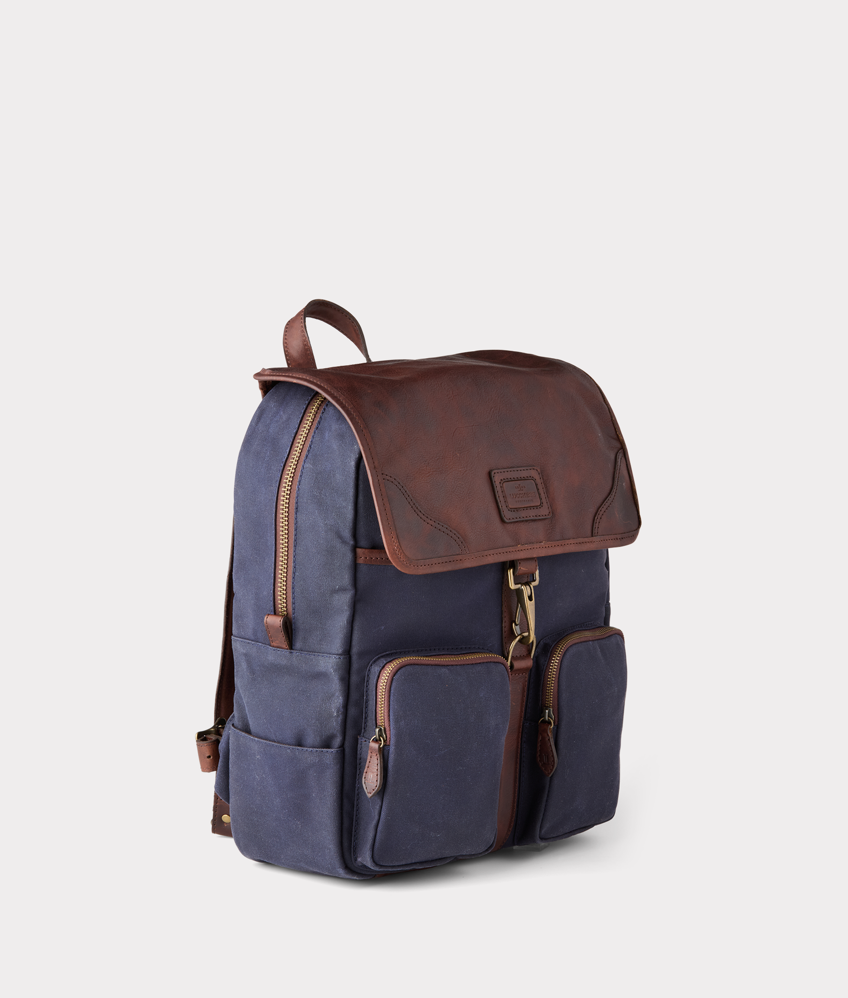 The Everyday Waxed Canvas Backpack sits squarely on the back and in the middle of adventure. The navy waxed canvas offers a look that is both rugged and refined. At the end of an outdoor weekend. throw your backpack down along with the rest of your Everyday Collection and rest. Whether you’re in the office or on the go. this bag meet all your needs. Meets major U.S. airline carry-on size requirements.