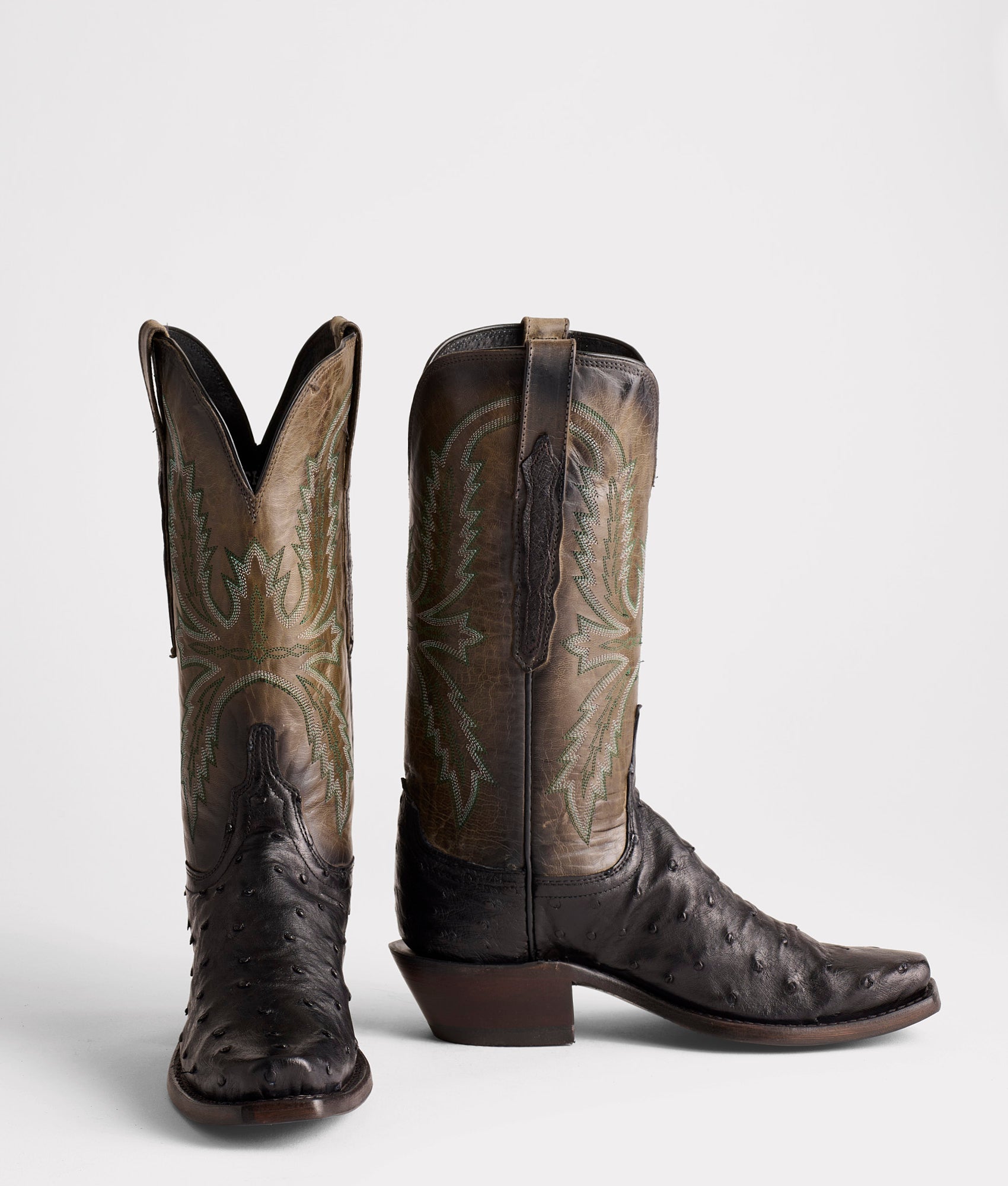 Saddle up your horse – the Josephine is cowgirl and life ready. Crafted from supple Full Quill ostrich leather and paired with a contrasting Celeste stitch pattern. this Western style looks best with your passed down stirrups or your favorite pair of jeans. Handmade in Texas.