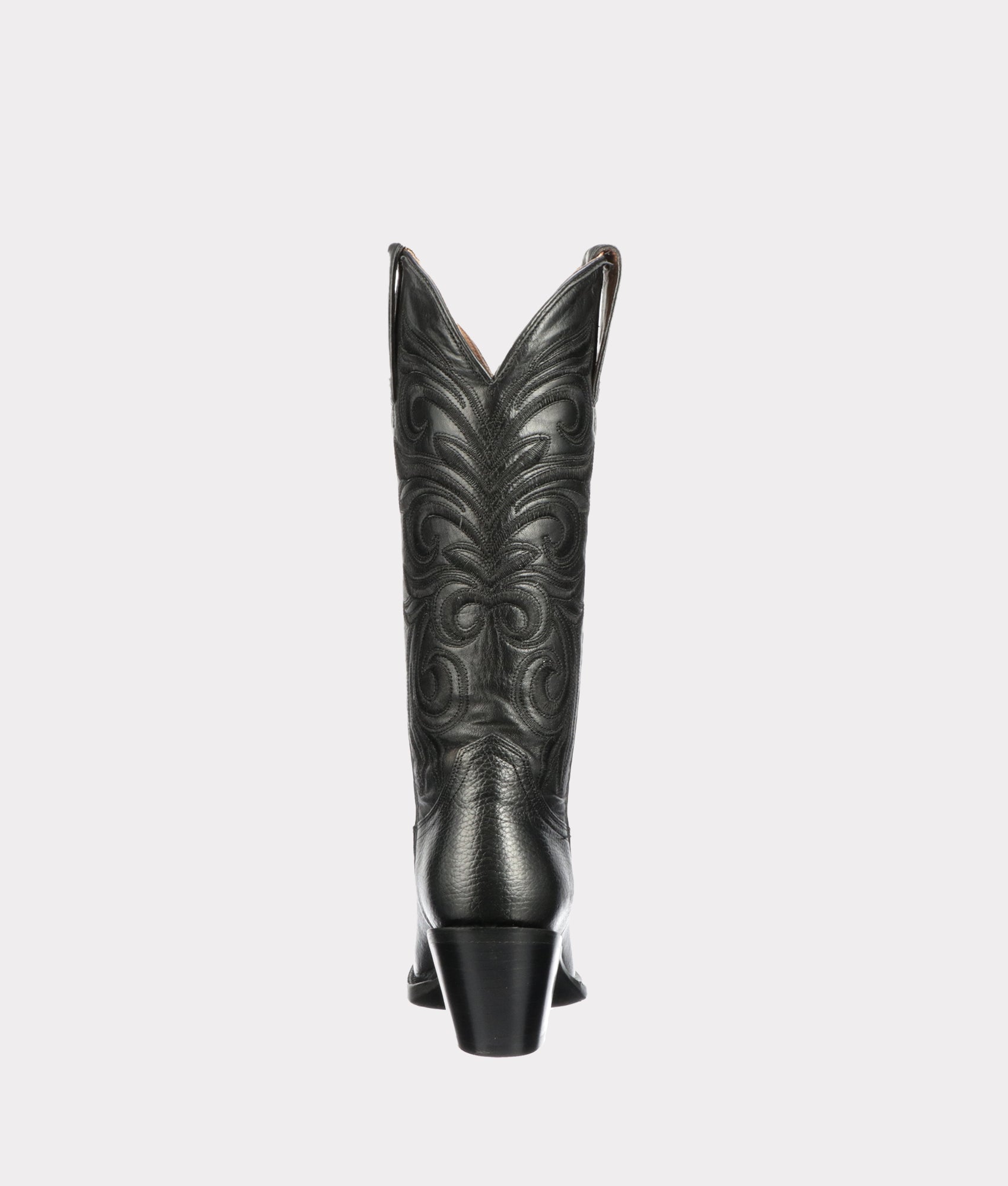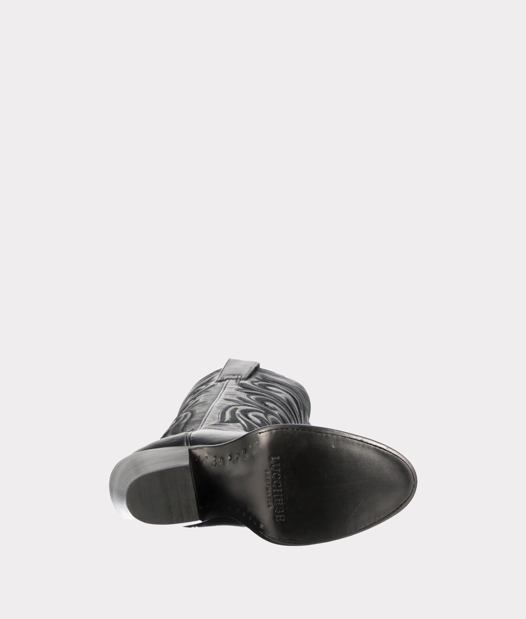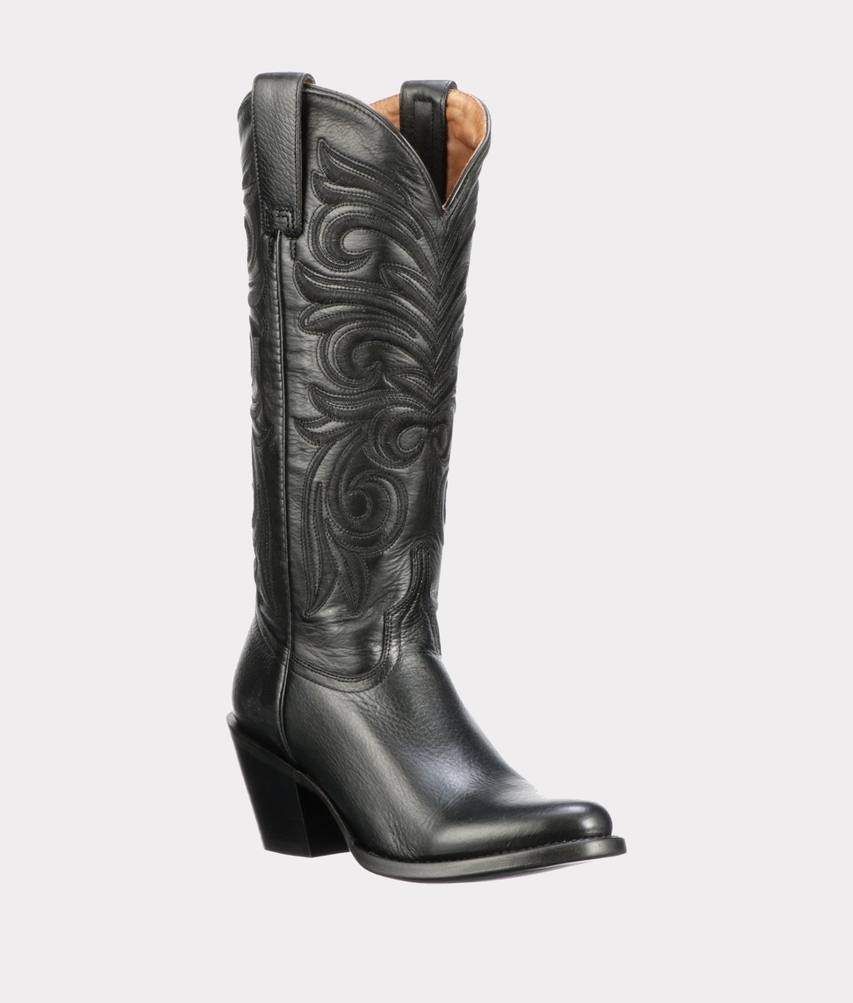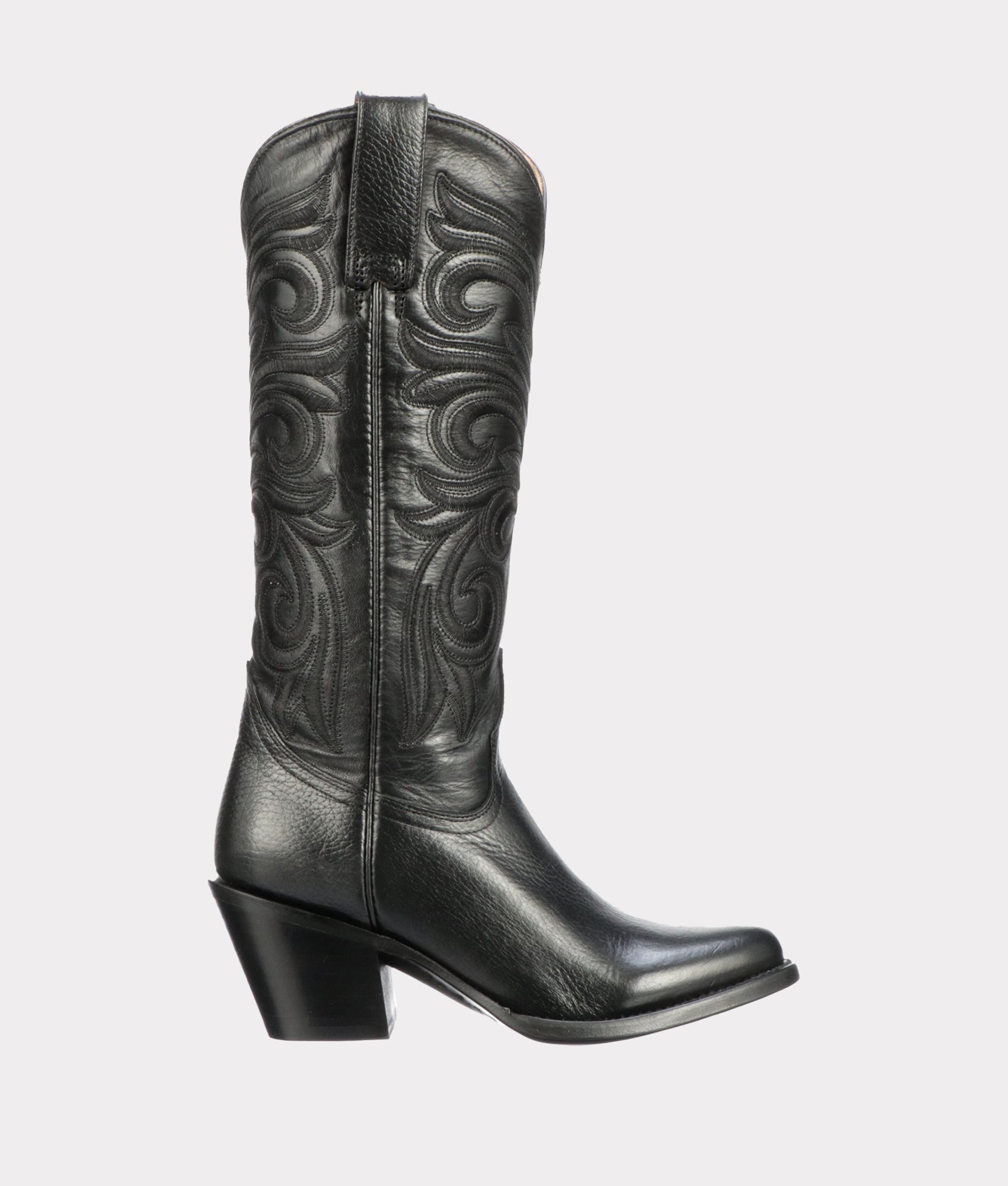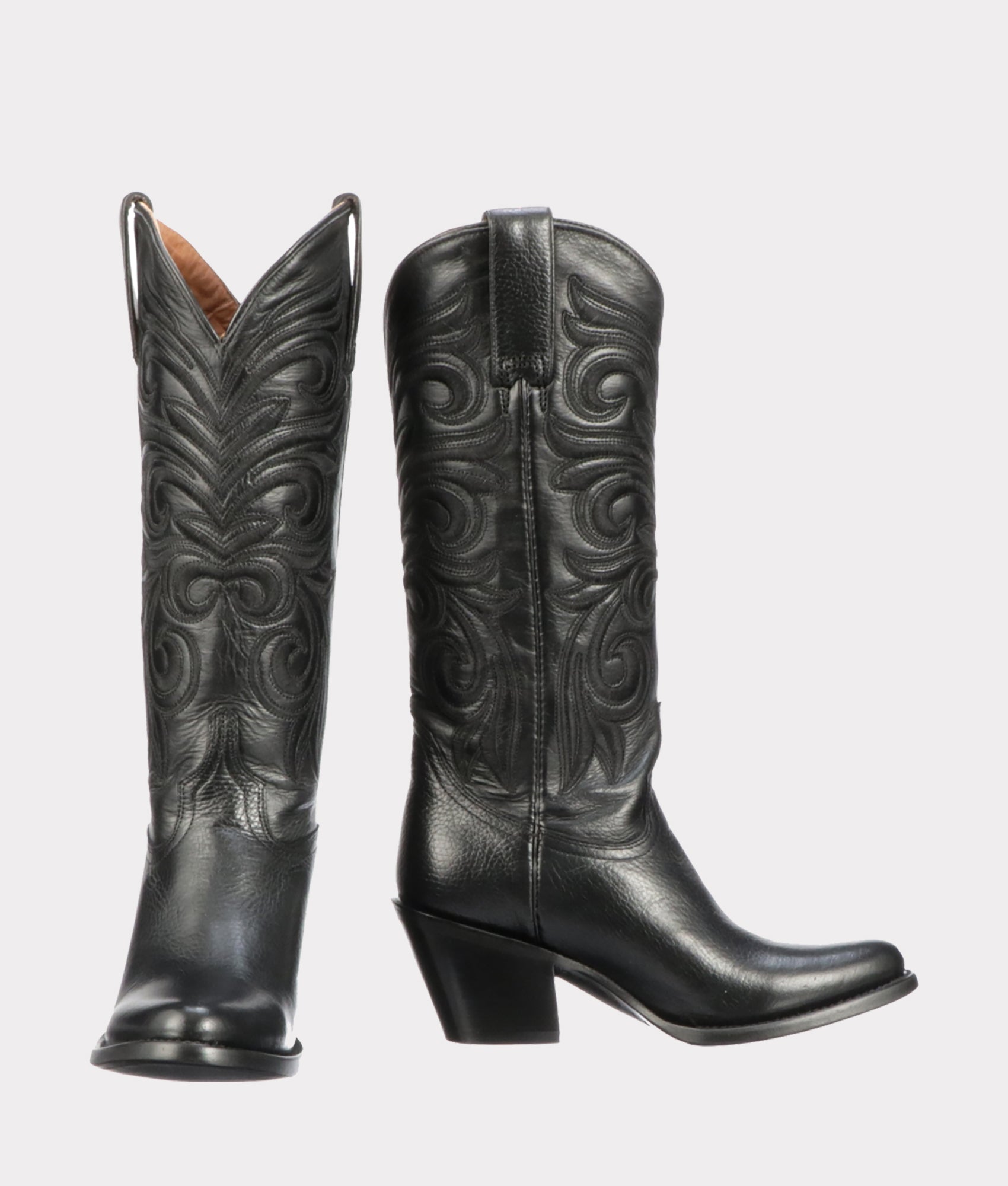 Carefully handcrafted. Laurelie is fashioned from Cowhide leather adorned with a beautiful hand-stitched quarter. Laurelie is a 13-inch tall stunner with quarters just a little taller than many cowgirl styles; a 3-inch heel lends a little extra height.
