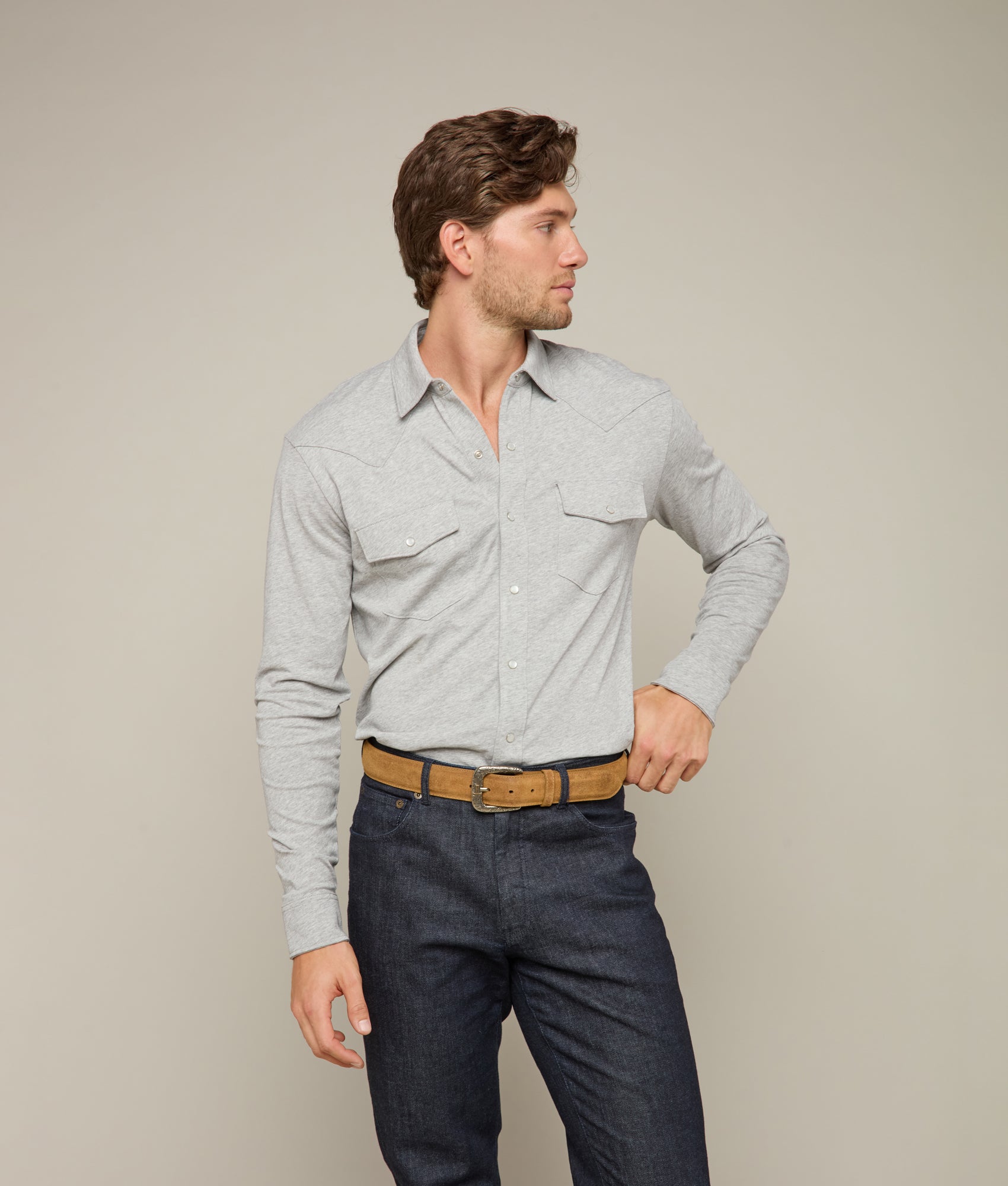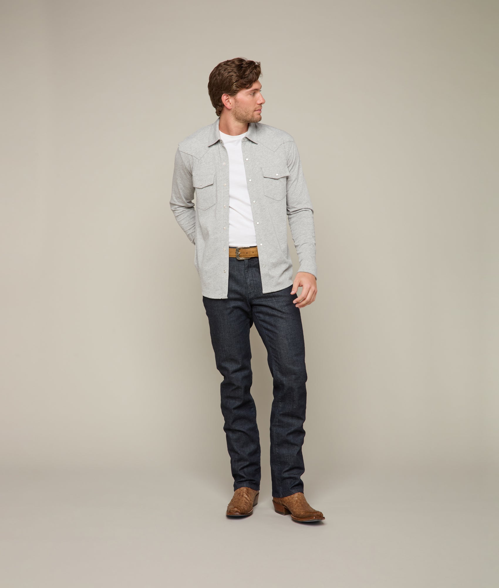 Timeless comfort can be found in the Long Sleeve Western Knit Top. A Peruvian wool piece that caters to those who live wild and walk elegantly. Sleek dual chest pockets. pearl snap closure. and snap cuffs elevate the versatility making it suitable for both casual outings and refined occasions. Tucked in or left out. this style is soft. warm. and easy.