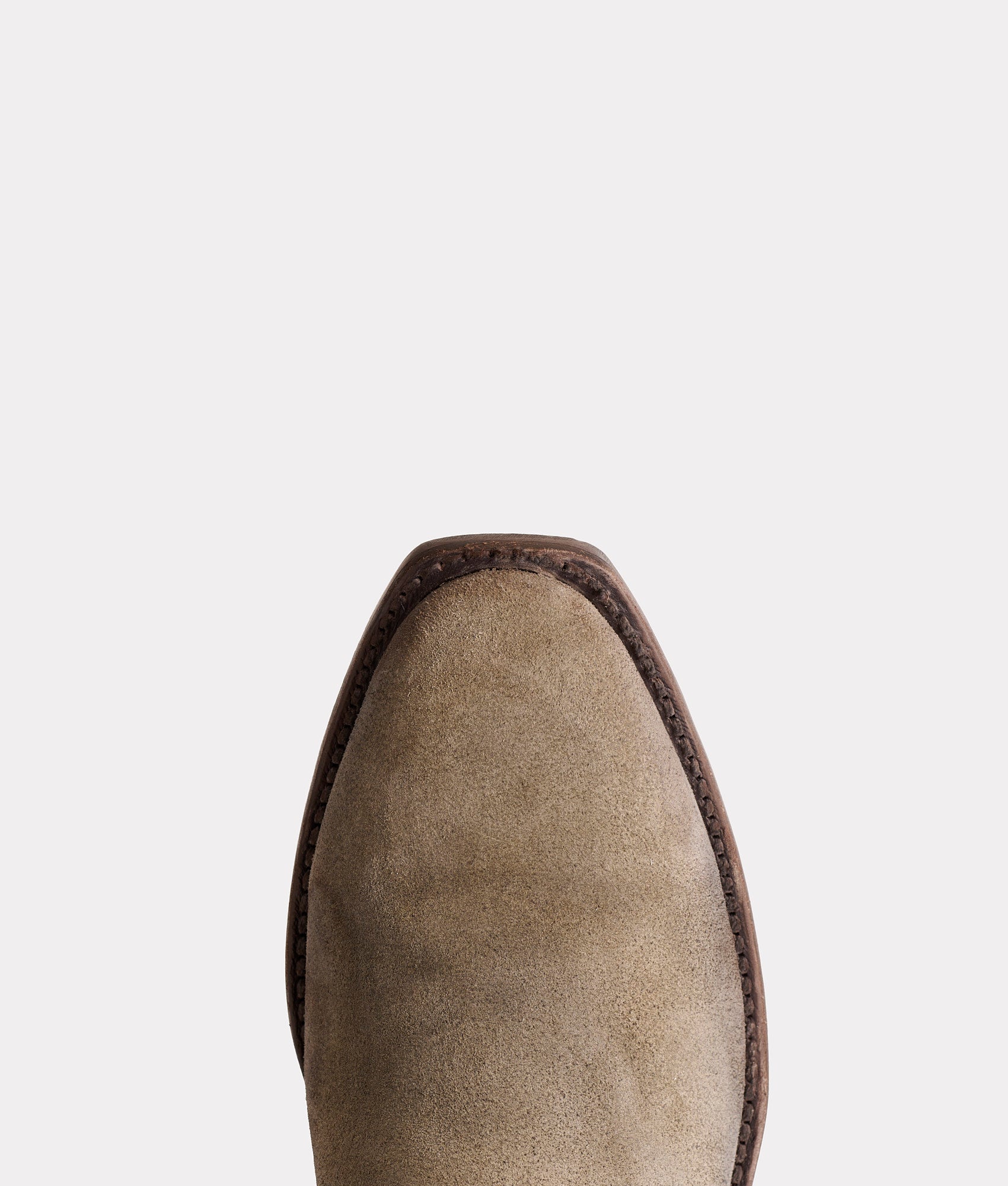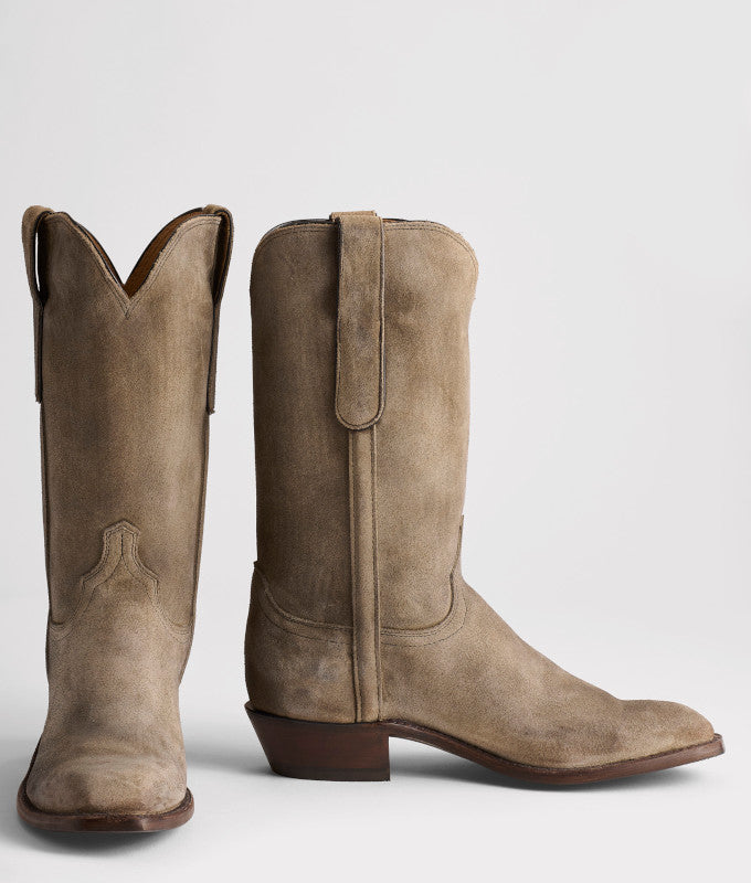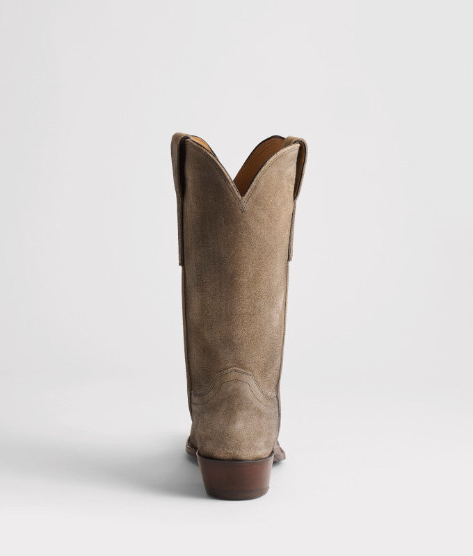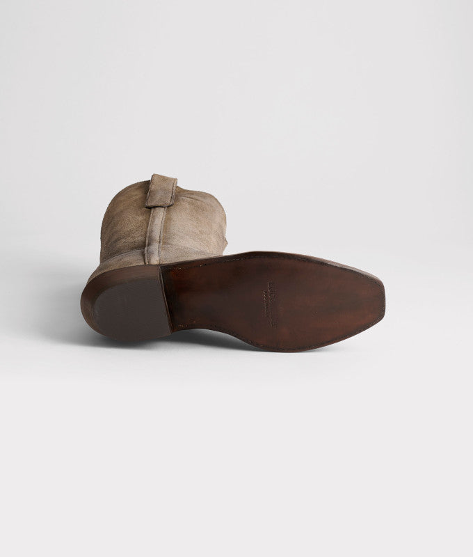Part of Chris Stapleton’s Volume II collection. the Old Friend pays homage to Chris’ heroes. Rugged in nature and vintage in design. the Old Friend is a piece of the songwriters’ uniform. This Western silhouette bridges the gap between grit and traditionalism with silky Italian suede and classic Mule Ear pull straps – a Torero side seam lends visual texture to a timeless boot. Handmade in Texas.
