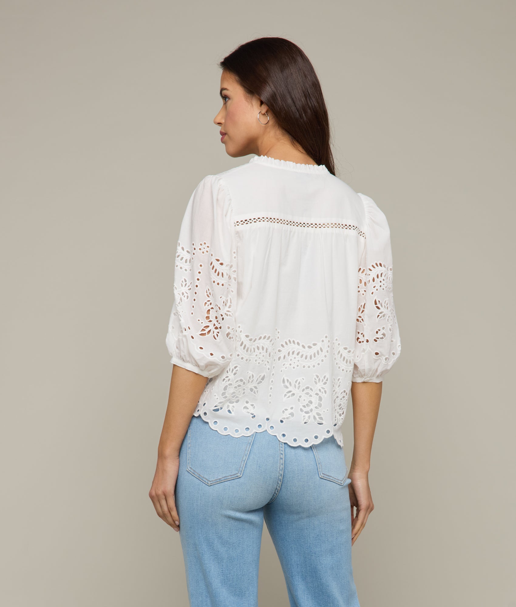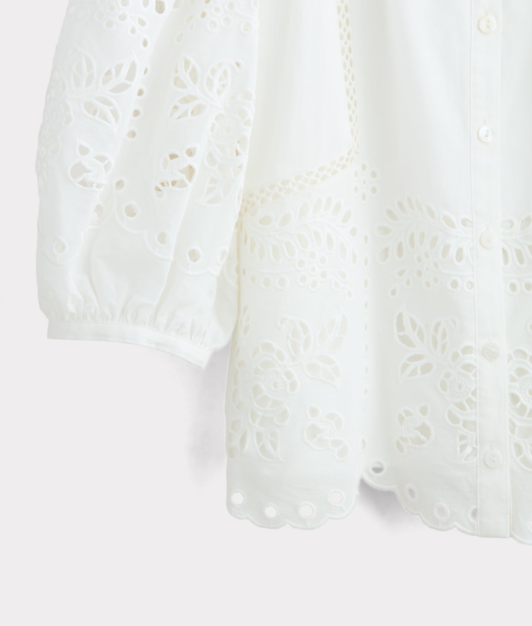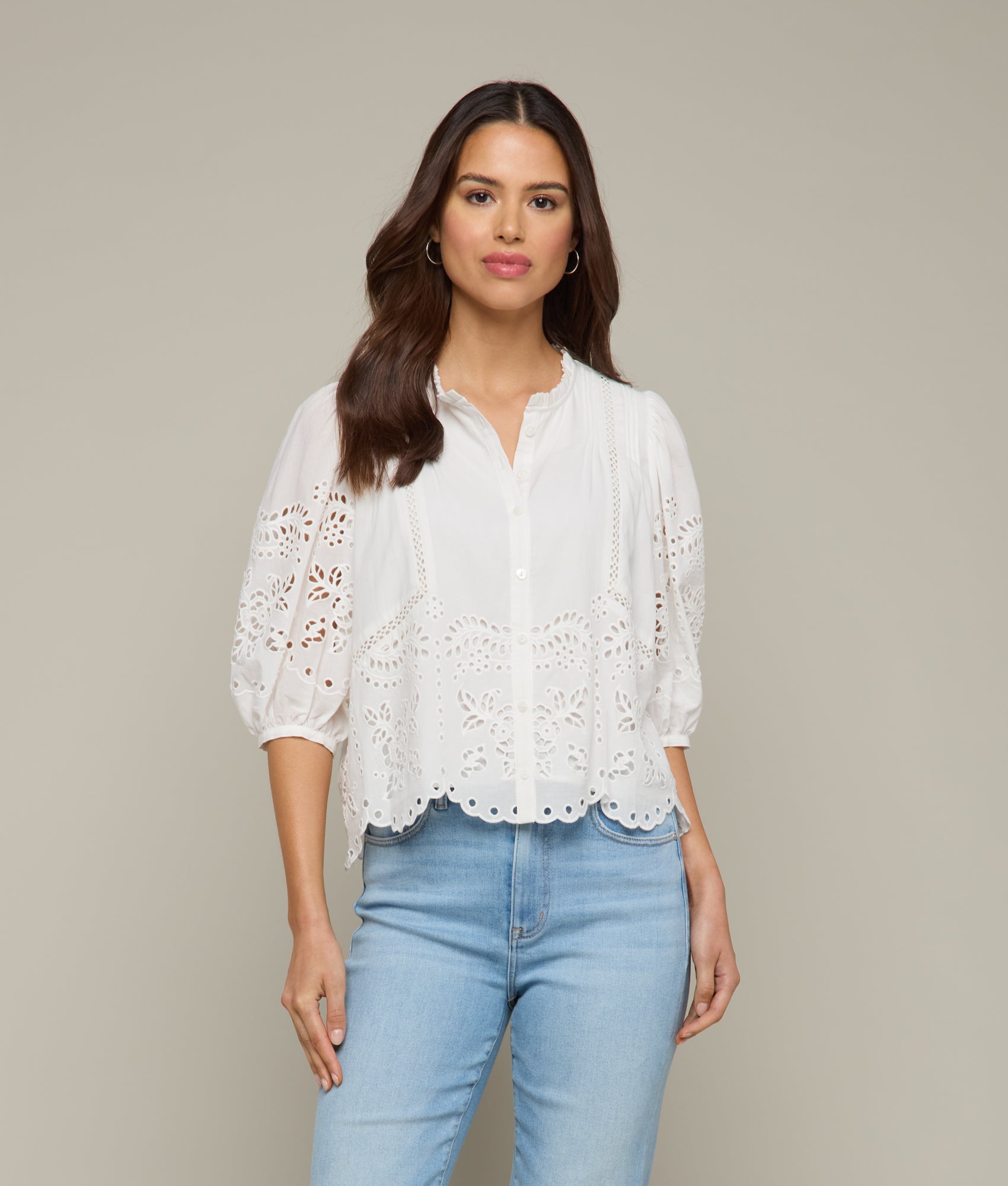 The Patricia Top is a timeless and elegant piece designed to unite the landscape and garments. The delicate floral design brings a touch of nature’s beauty to your wardrobe. making it a versatile addition to both casual and dressier outfits. The top features a ruffle stand collar that adds a subtle feminine touch. complemented by bishop sleeves for a voluminous and graceful silhouette. A button closure enhances the design’s vintage appeal. while the contoured hem creates a flattering shape.