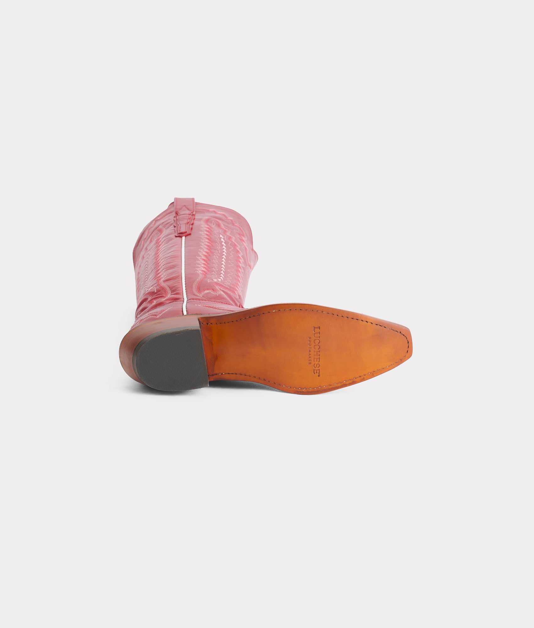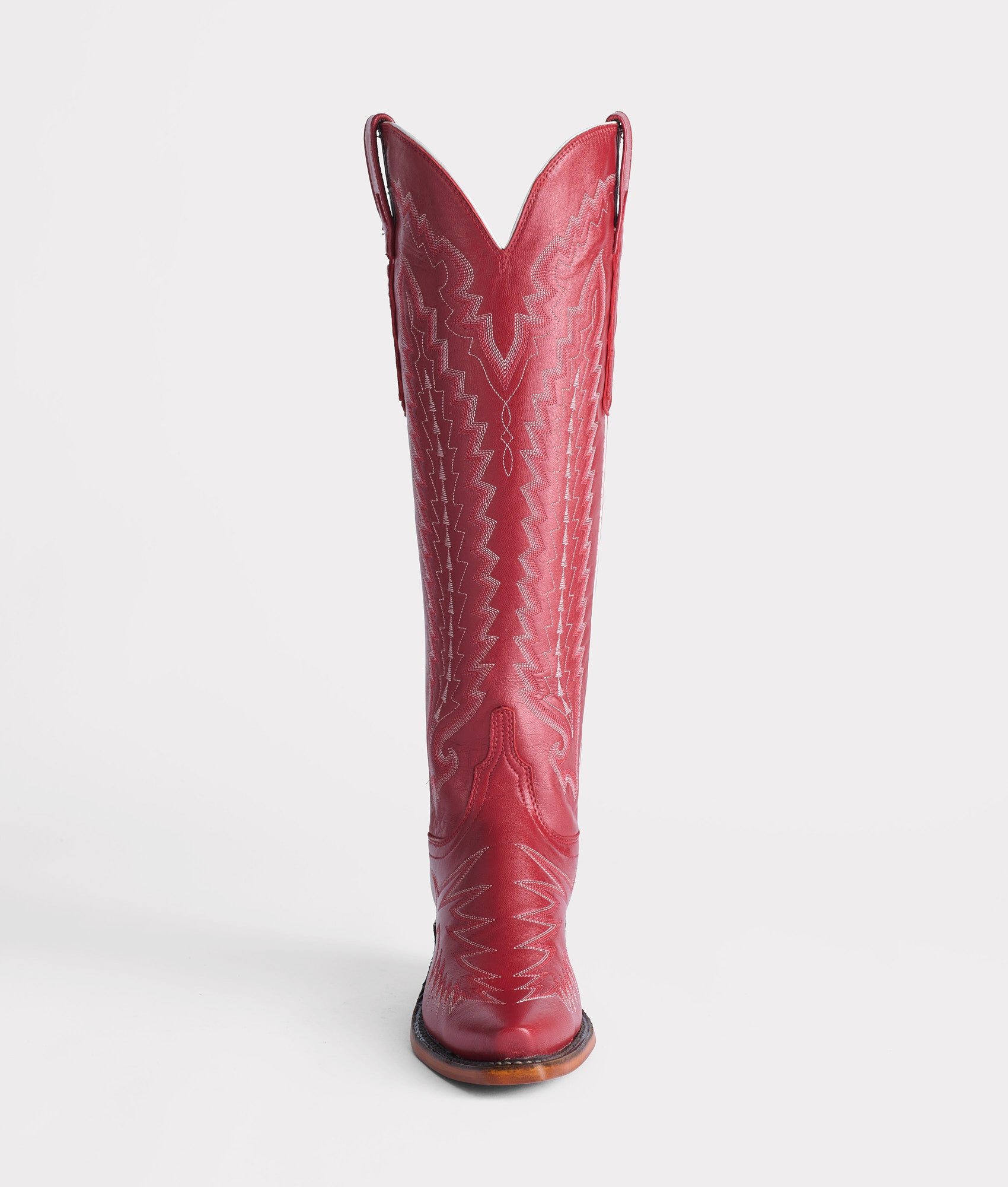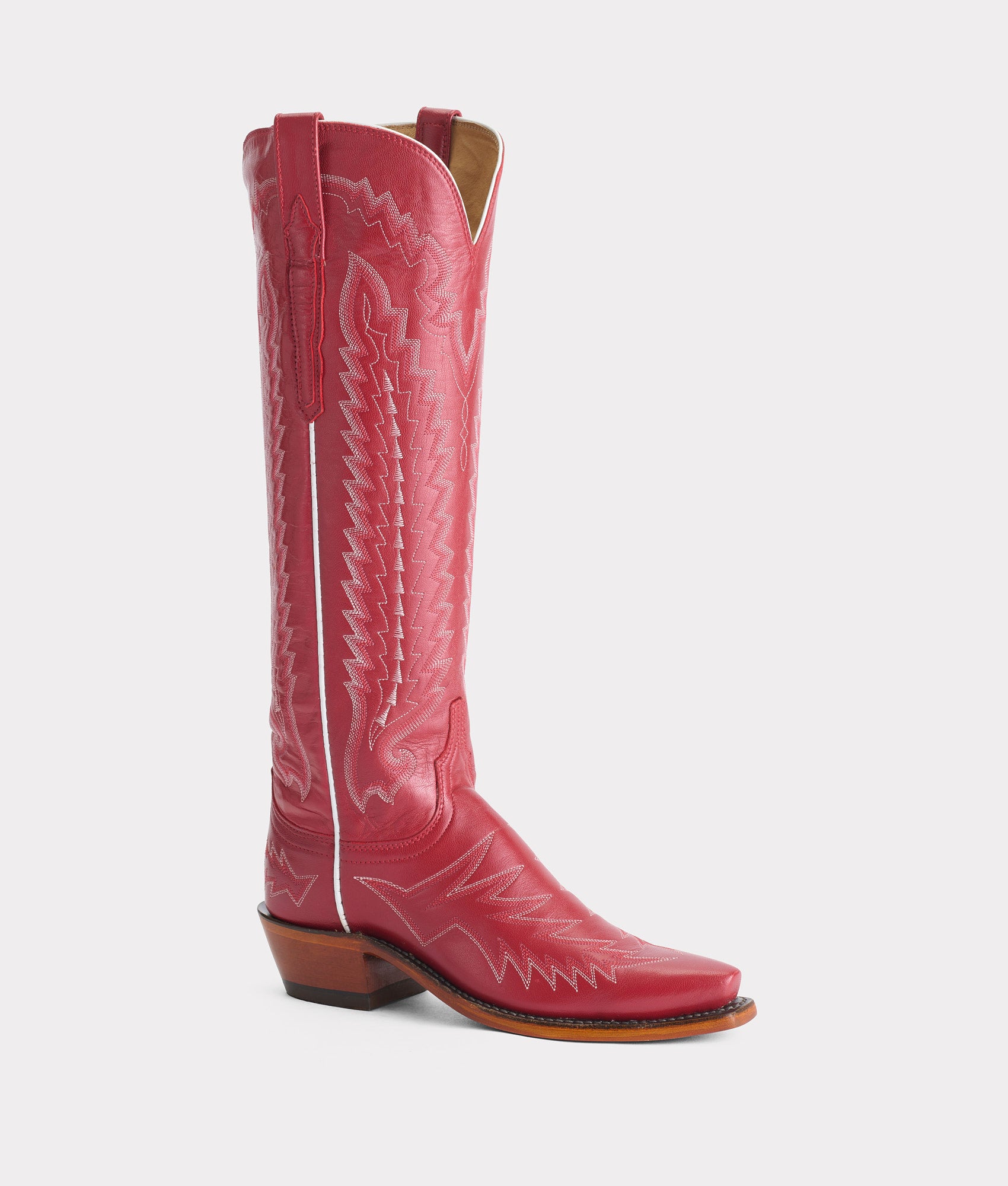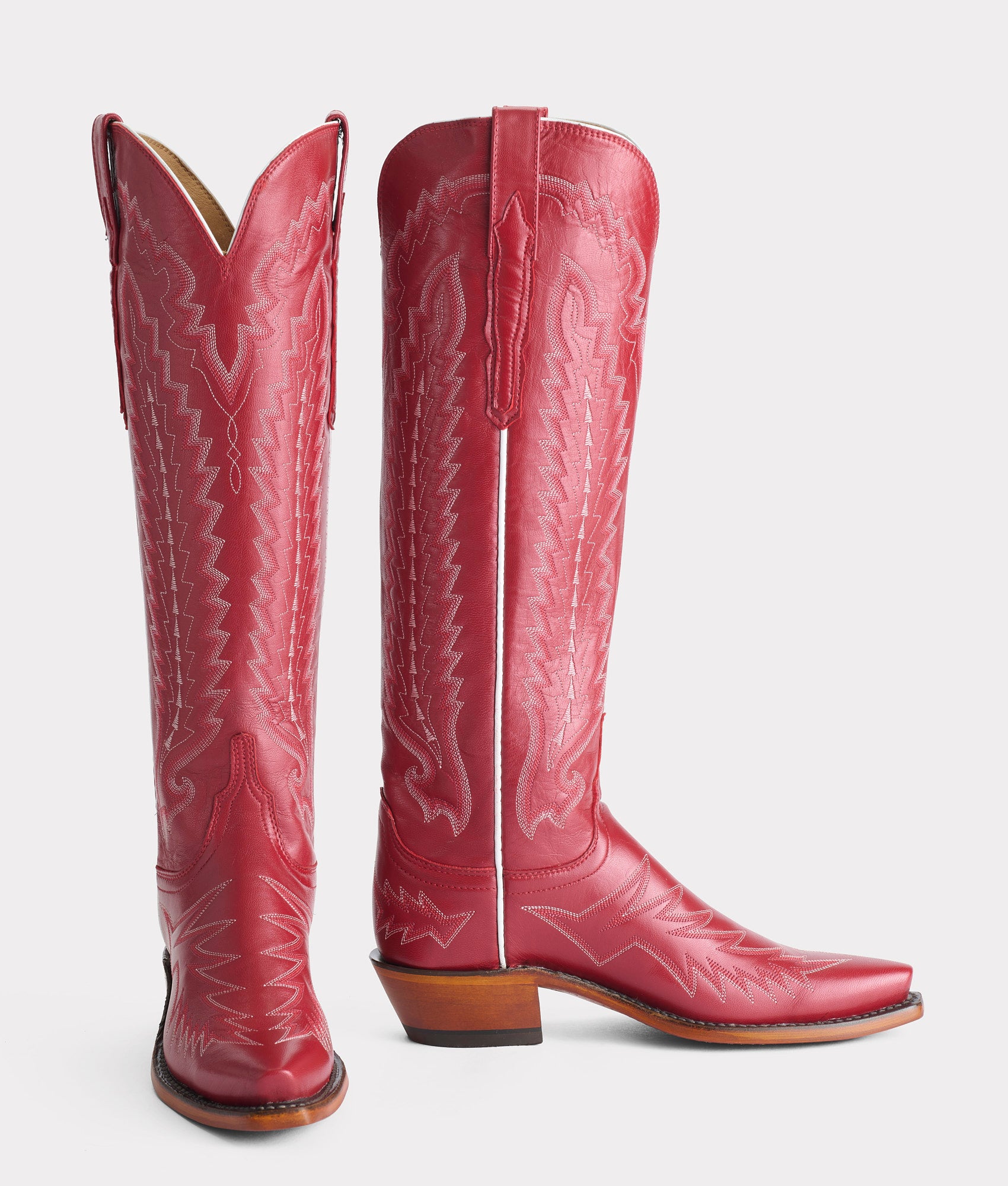 Our No. 1 bestselling boot for women. Priscilla walks an elegant line between timeless classic and cowgirl chic. The vintage-inspired Tioga stitch pattern harks back to yesteryear. but Priscilla is a boot built?for?today.?This?knee-skimming.?pull-on?silhouette?handcrafted?from?supple?goat leather deserves the spotlight?under?dresses?and?over jeans. Handmade in Texas.