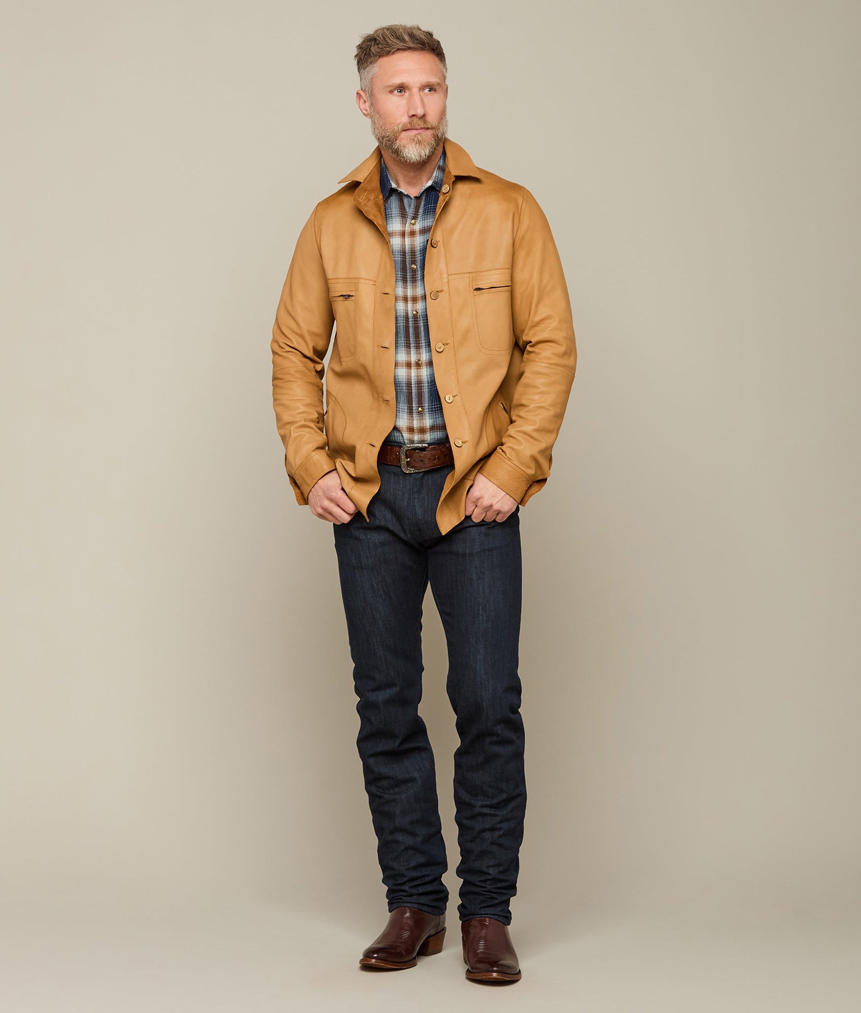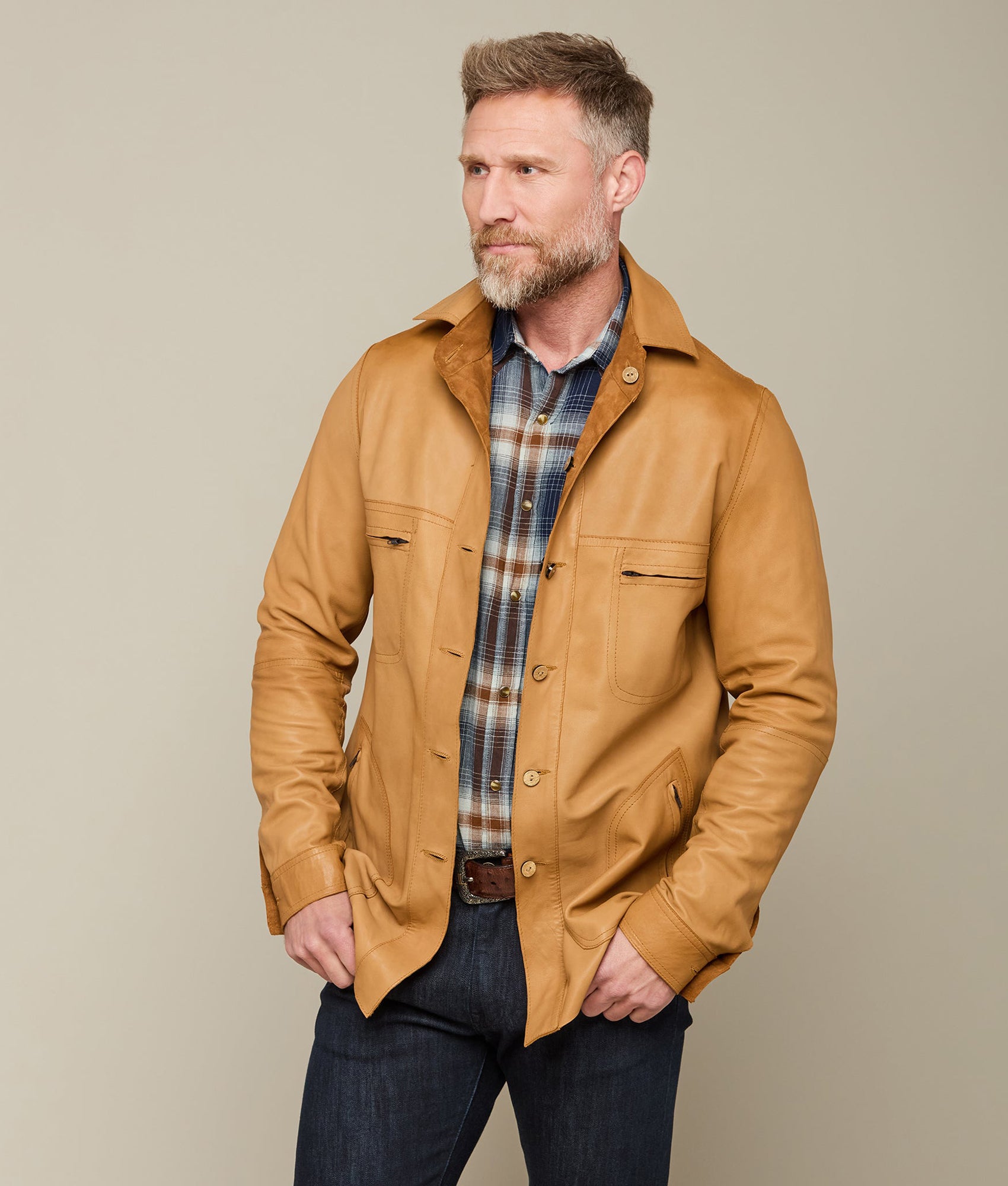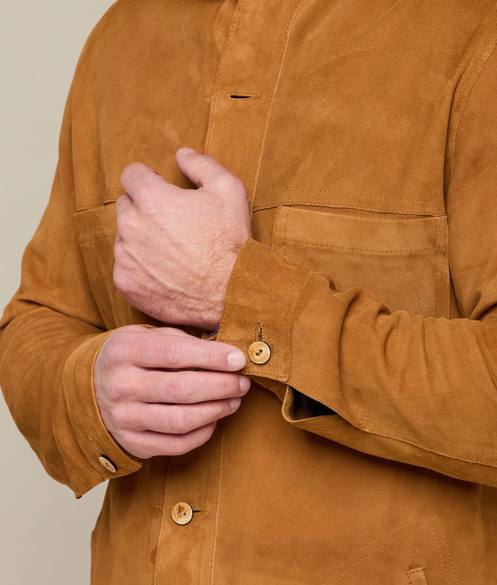 The Reversible Shacket in cinnamon is fashioned from luxurious suede and calf leather allowing it to be dressed up or down with ease. Fitting longer in the tail. this shacket will go over a t-shirt. dress shirt. or flannel. Dressing up for a night on the town has never been so easy. Clean professionally.?