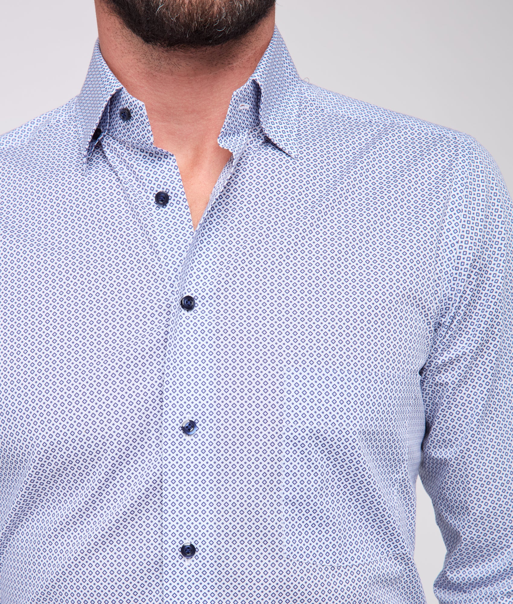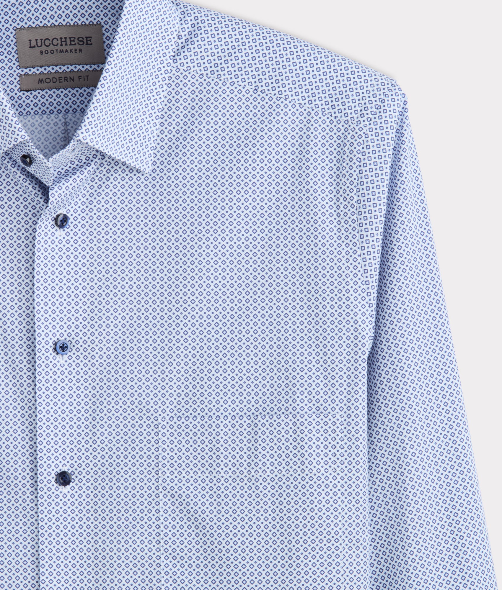 Named for the Texas city where Lucchese originated. the San Antonio is a timeless button-up designed with one chest pocket and barrel cuffs. Crafted for versatility. it blends heritage with refinement. The modern fit is slim through the chest and waist. with narrower shoulders and shorter sleeves. It’s designed for lean builds who prefer a contemporary profile.