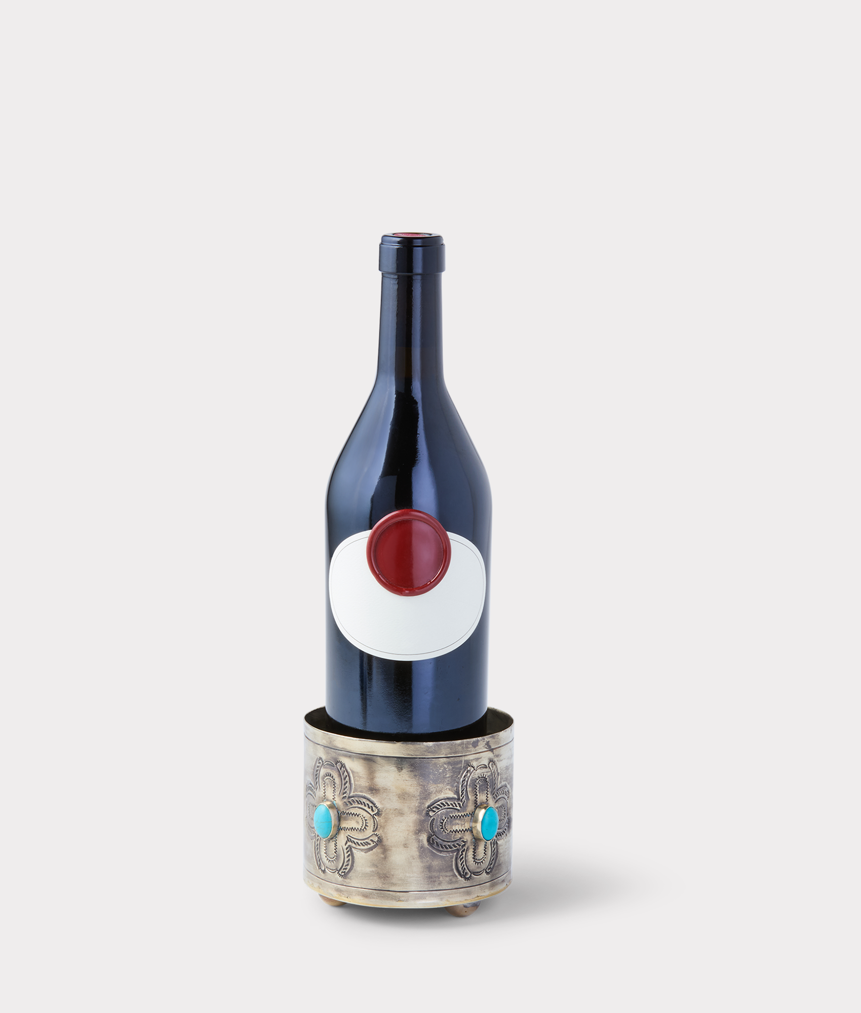 Handmade by world-renowned artisans. the Silver Wine Coaster offers a vintage. yet contemporary feel to any kitchen or party. The Southwestern flair appeals to those who want a taste of the finer things. Embellished with genuine turquoise. this piece is perfect for a night of charcuterie and wine.