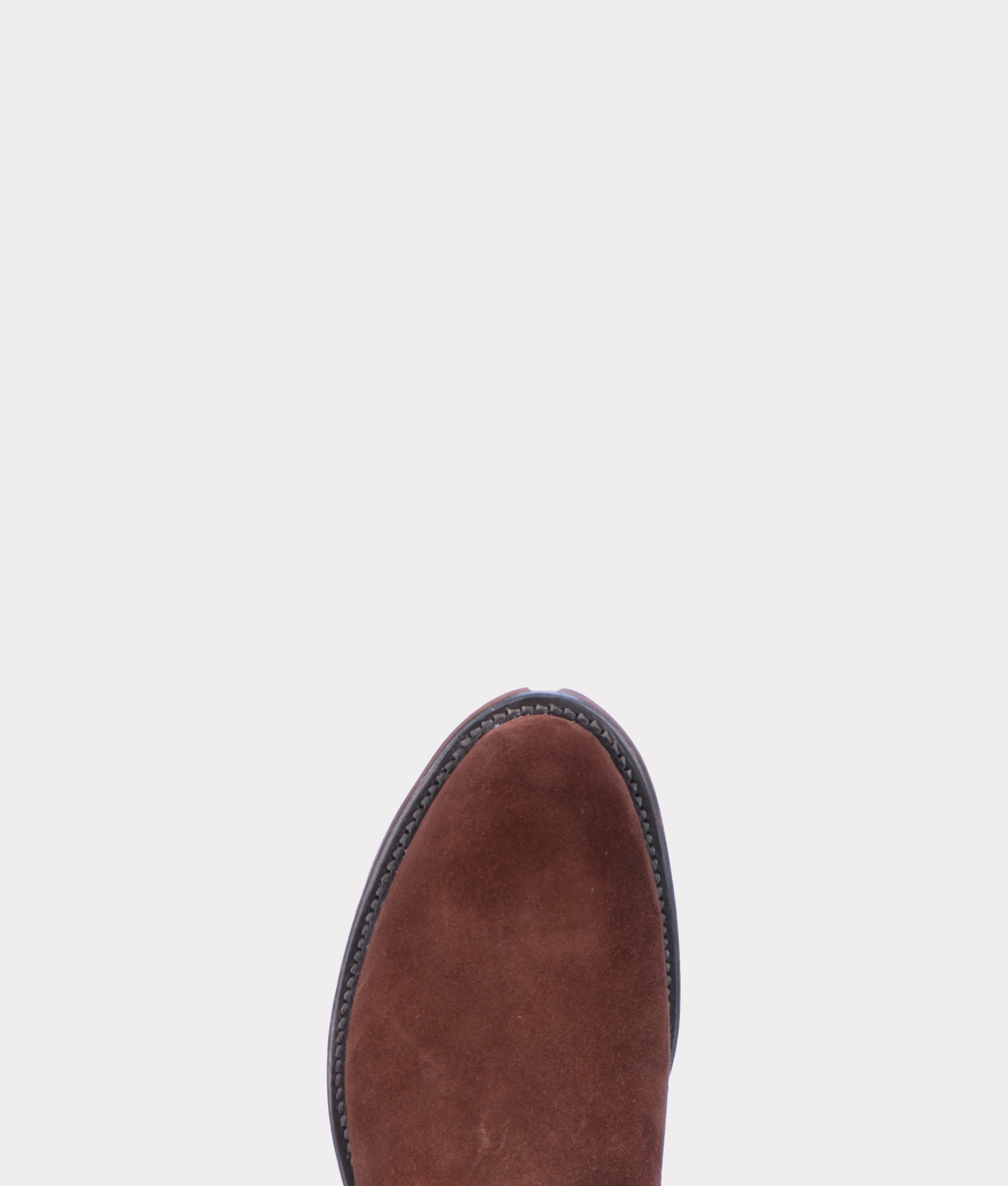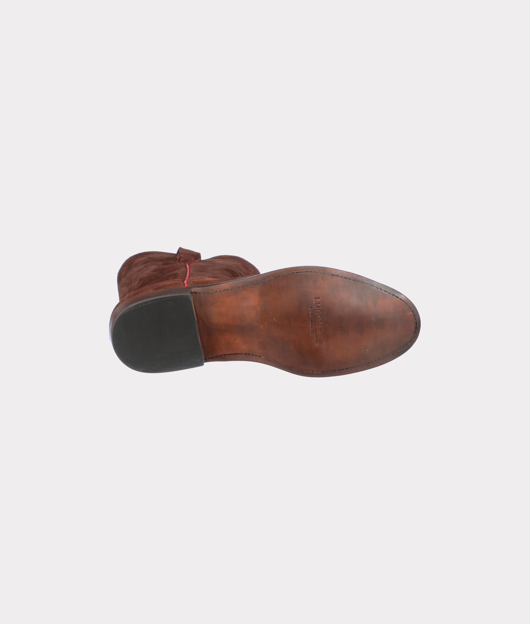 The Sunset Suede is a roper crafted from bold tones of scuff-off sandwich suede. A Classico stitch pattern coupled with Sunset pull straps. contrasting side seams and piping offer superior style. Handmade in Texas.