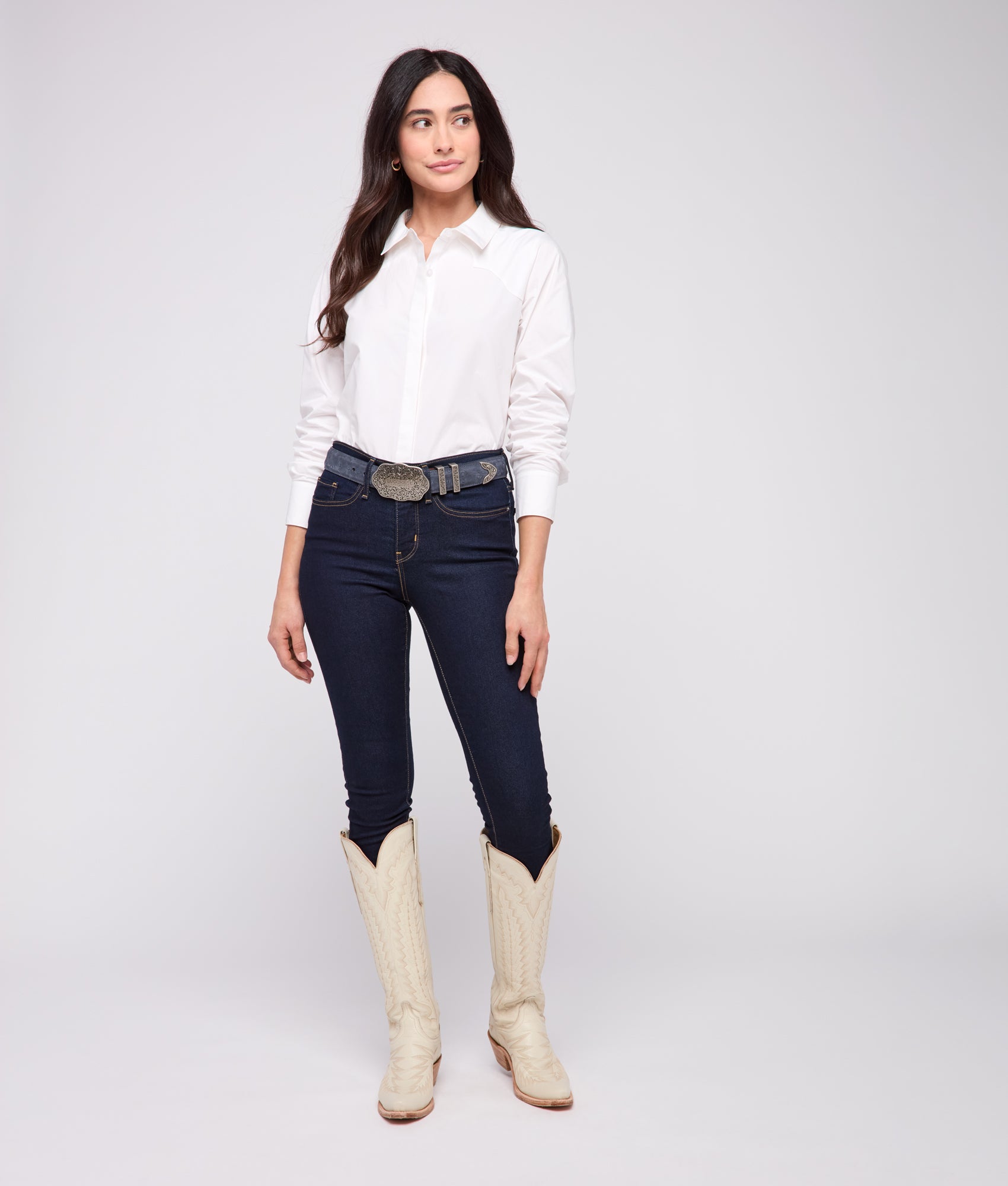 The Sweetheart Belt is cut from Sueded Ostrich. Its matte grain is rough under the light but smooth to the touch.?Coming in Storm Blue. this piece matches back perfectly to the Sweetheart boot. The 1.5-inch belt carries a three-piece sterling silver buckle engraved in Cattleman’s lace??a tooled-like design but on the surface of metal rather than leather. Don’t be afraid to get clever and cute with how you style her.
