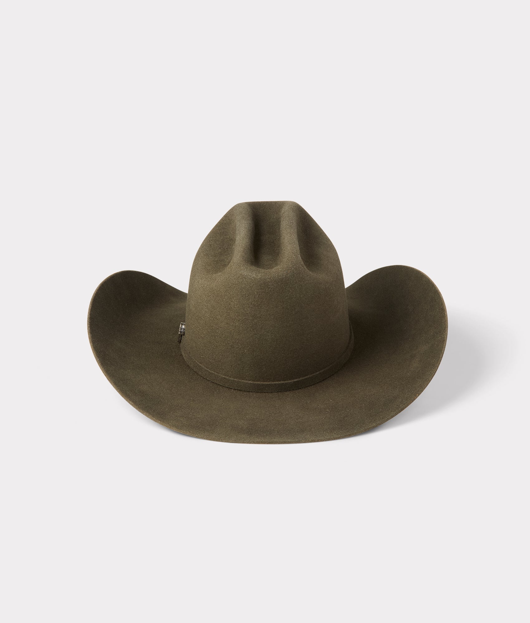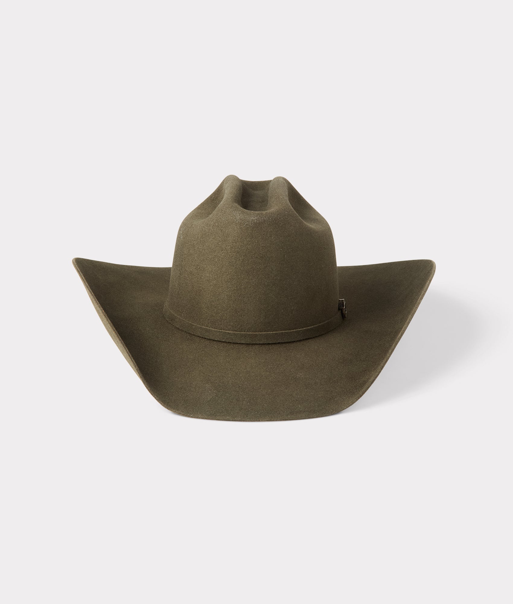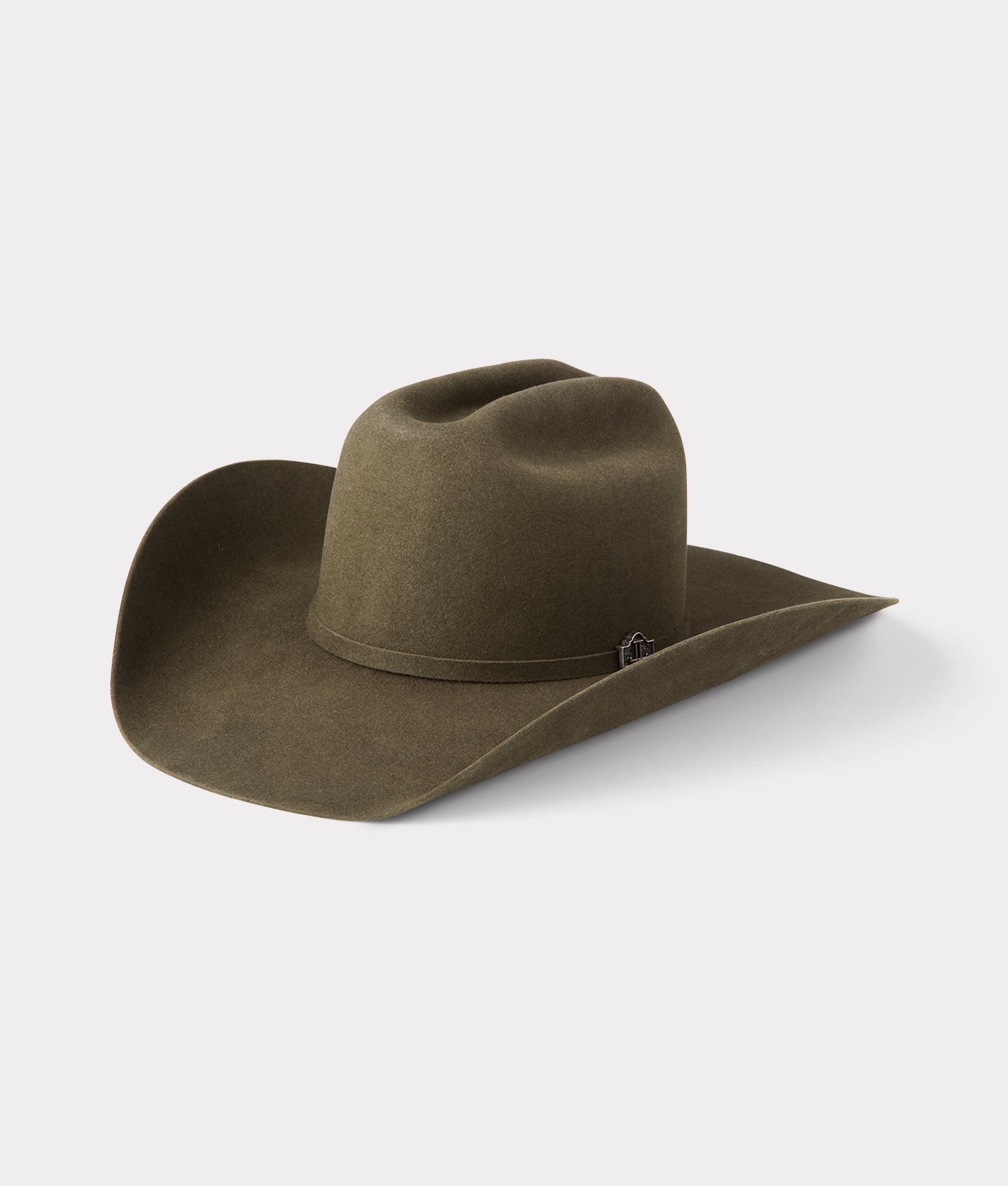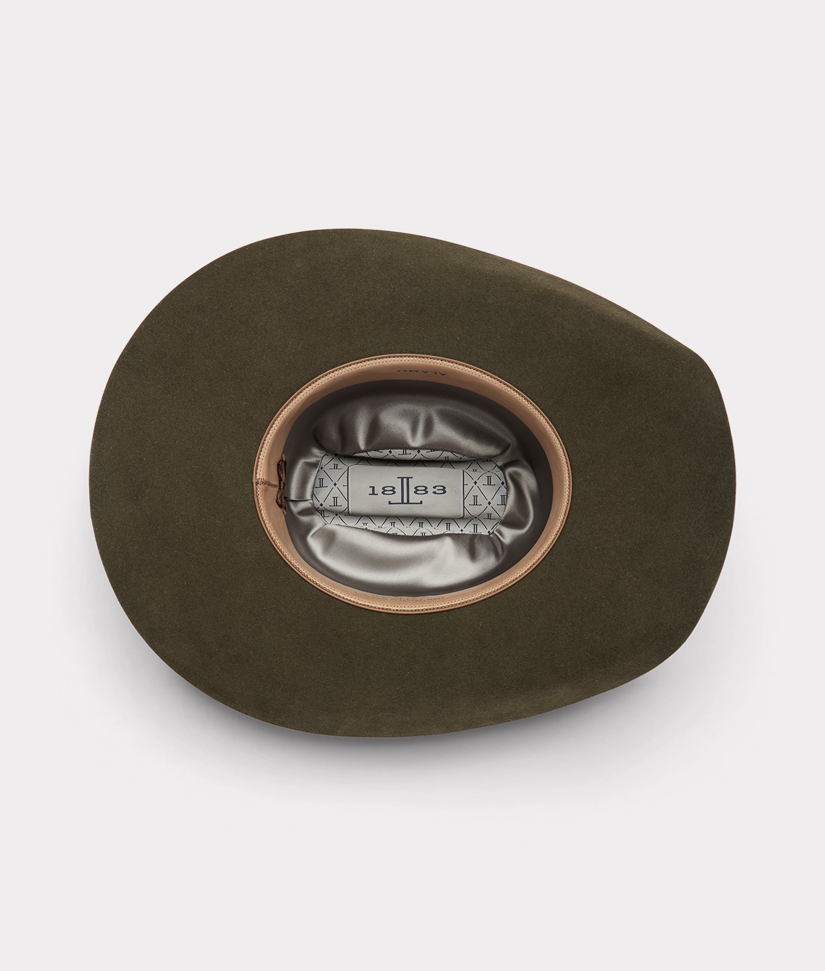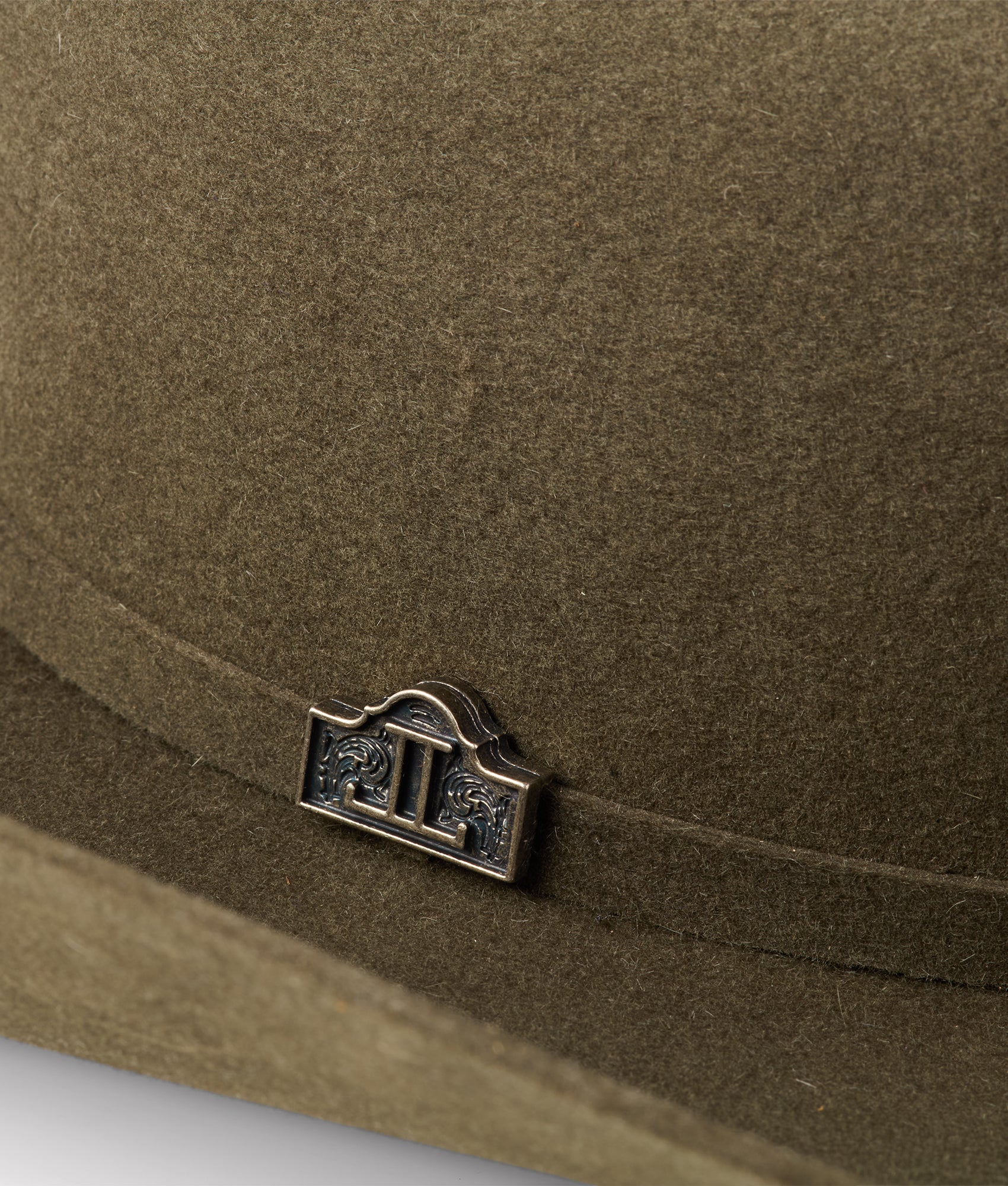 Part of our exclusive Lucchese Western hat collection. the Alamo is a hat that pays homage to the Lone Star State – inspired by the city where Lucchese Bootmaker was founded in 1883 and named after the historical landmark in Texas. The Alamo is 100% custom made and hand-shaped from a blend of the finest beaver and nutria furs. A 4 1/2 tapered crown with a slightly modified cattleman’s crease and a 4 1/4 brim achieve a Western look. A self-band made from its own body are attached with a handmade hat pin styled in the shape of the Alamo with the Lucchese mirrored-L 1883 logo inside the outline. Each hat is individually sanded to give that velvet finish. Handmade in Texas.